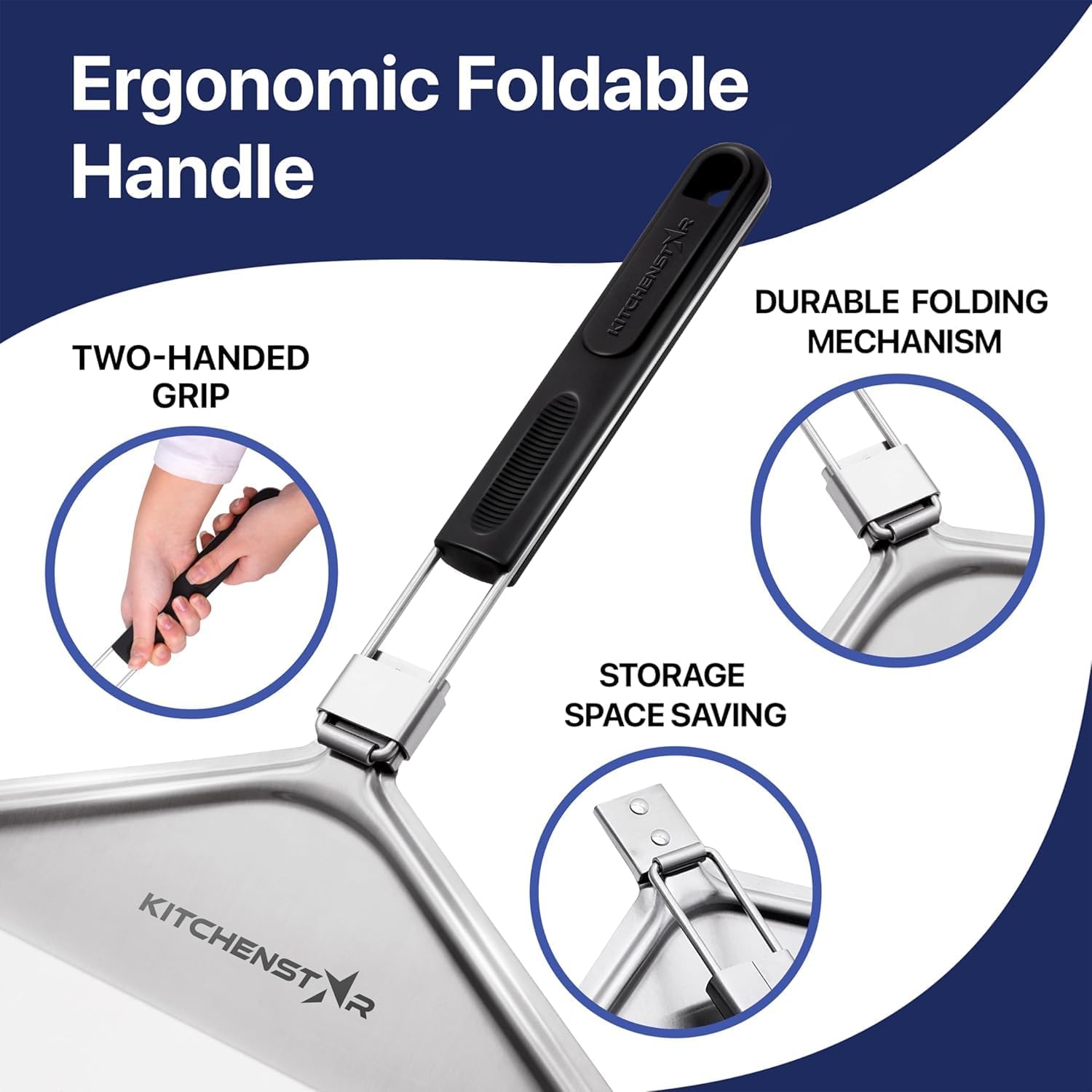 KitchenStar 12-inch Metal Pizza Peel with Folding Handle - Stainless Steel Spatula Paddle for Effortless Pizza Transfer & Easy Storrage - Dishwasher Safe Pizza Oven Accessories