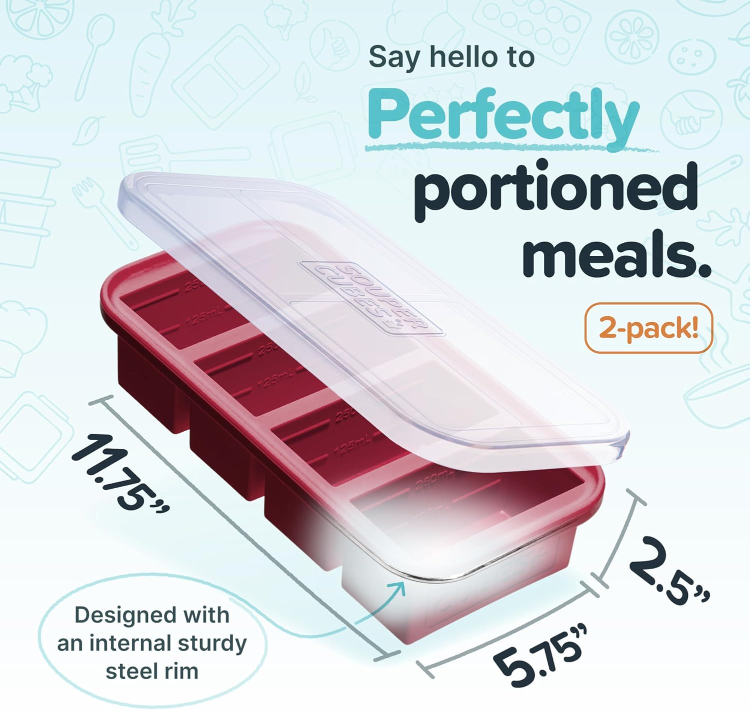 - SAVE TIME AND MONEY BY MEAL PREPPING: Spend less time thinking about what you're going to eat and more time enjoying it. Our silicone soup cubes are designed to make meal prep a breeze. The soup cube trays are made from 100% pure platinum food-grade safe silicone with a steel-reinforced top and a convenient lid.