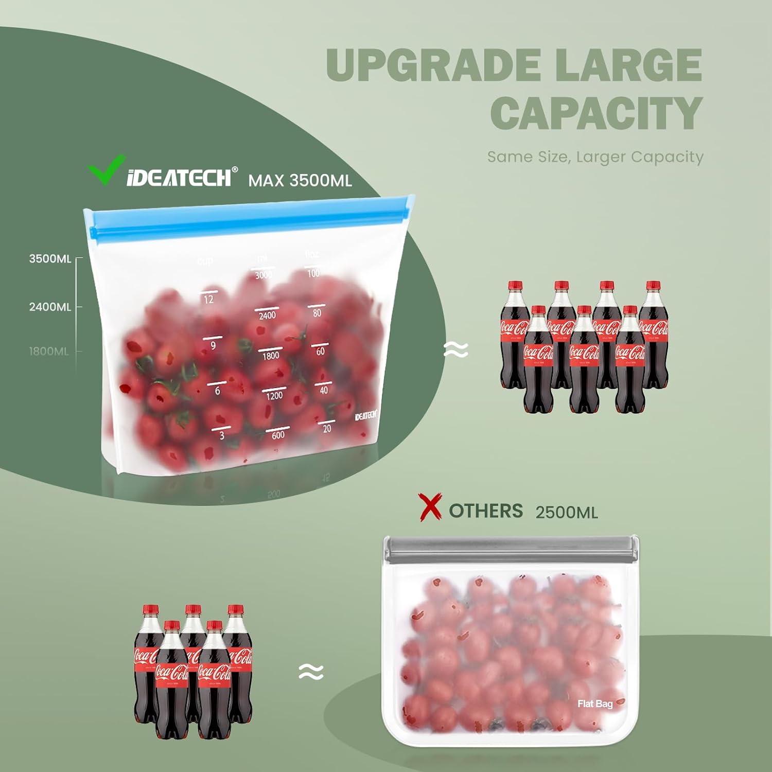 IDEATECH Reusable Bags Dishwasher Safe, BPA Free Reusable Freezer Bags Stand Up, Leakproof Silicone Bags for Food Storage Containers, Salad Fruit,Vegetables,Traval, Home Organization -Gray 6 Gallon