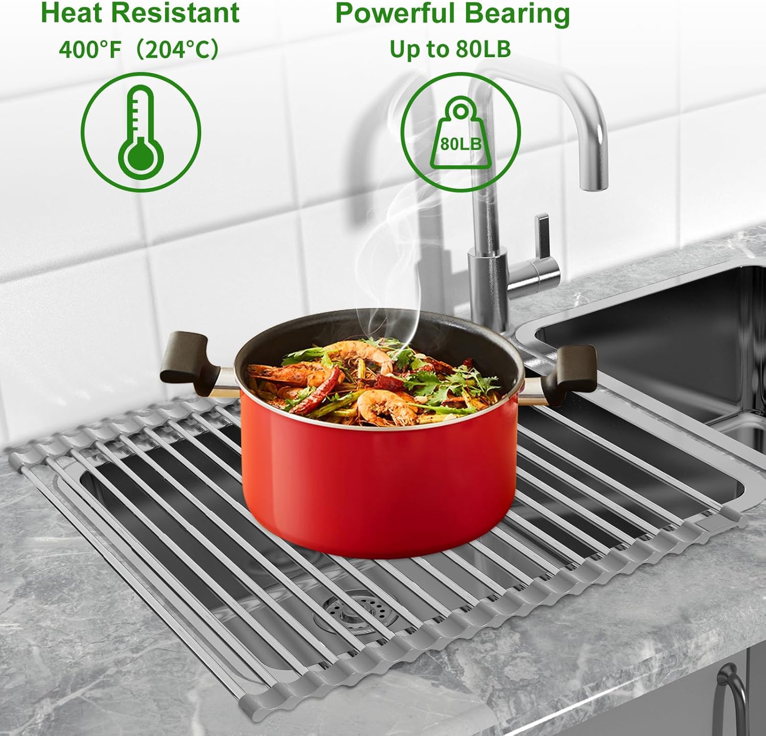 - Special Feature : Expandable, Heat Resistant, Roll-Up, Rust Resistant, Space Saving