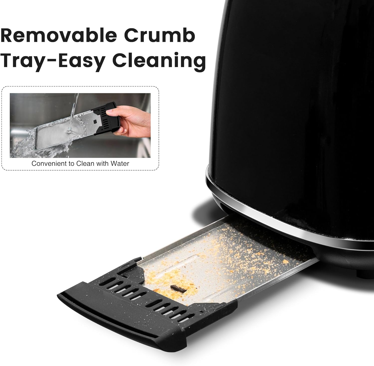 2 Slice Toaster Retro Stainless Steel with Bagel, Cancel, and Defrost Functions, 6 Bread Shade Settings, Extra Wide Slots and Removable Crumb Tray, Black