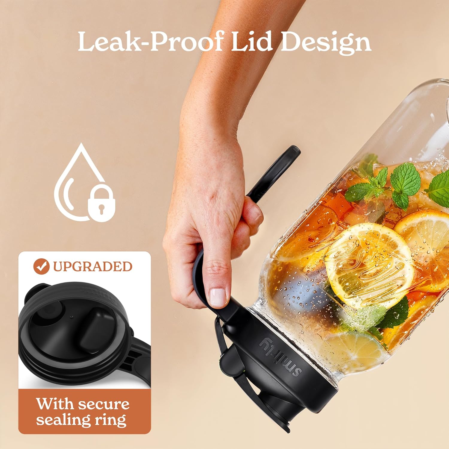 SMIRLY 64 oz Mason Jar Pitcher,Glass Pitcher with Wide Mouth,Water Jug with Double Leak Proof Lid for Iced Coffee,Hot Water,Breast Milk