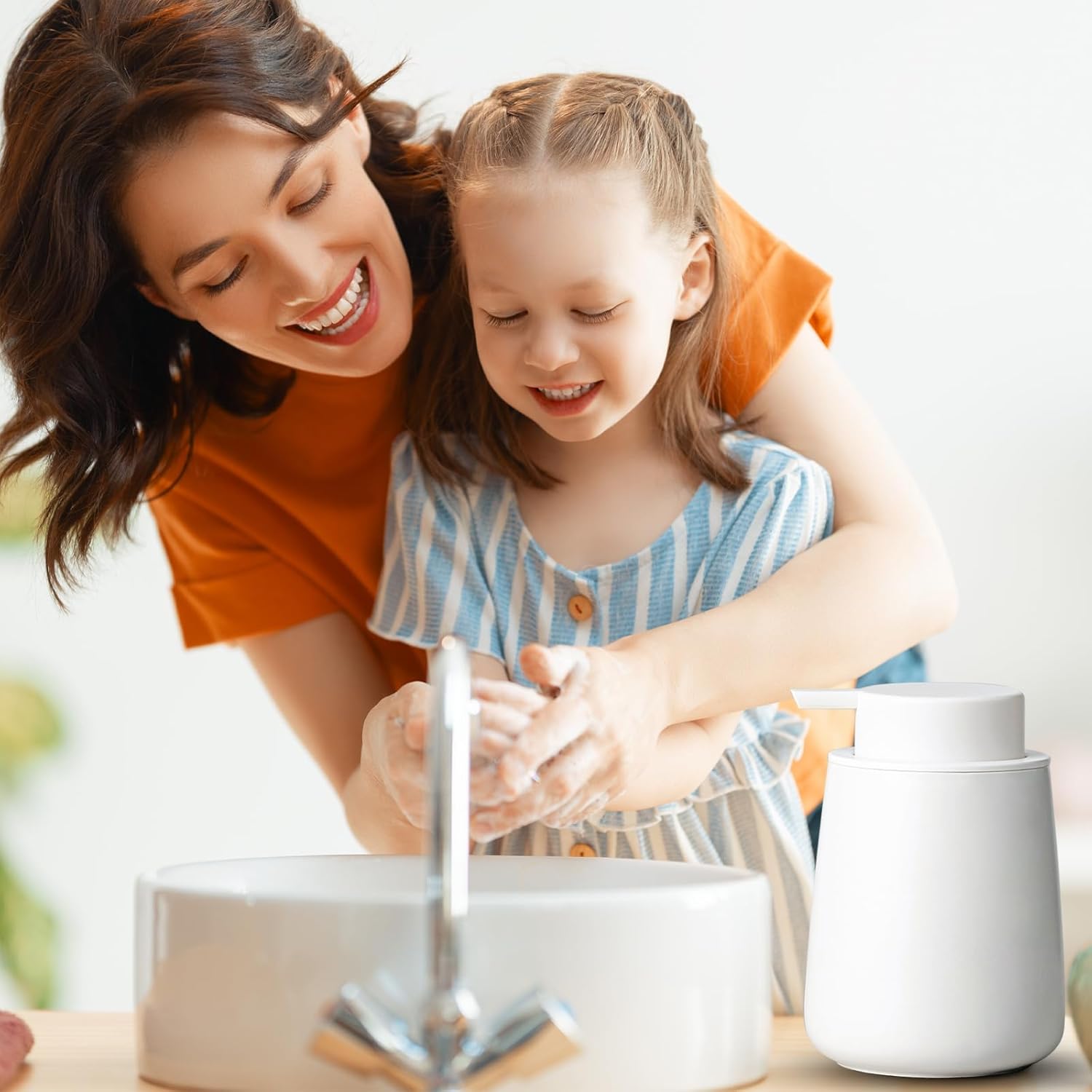 - Durable and refillable: Ceramic soap dispenser is easy to clean, hand soap dispenser bottle and plastic foaming soap pump can be reused