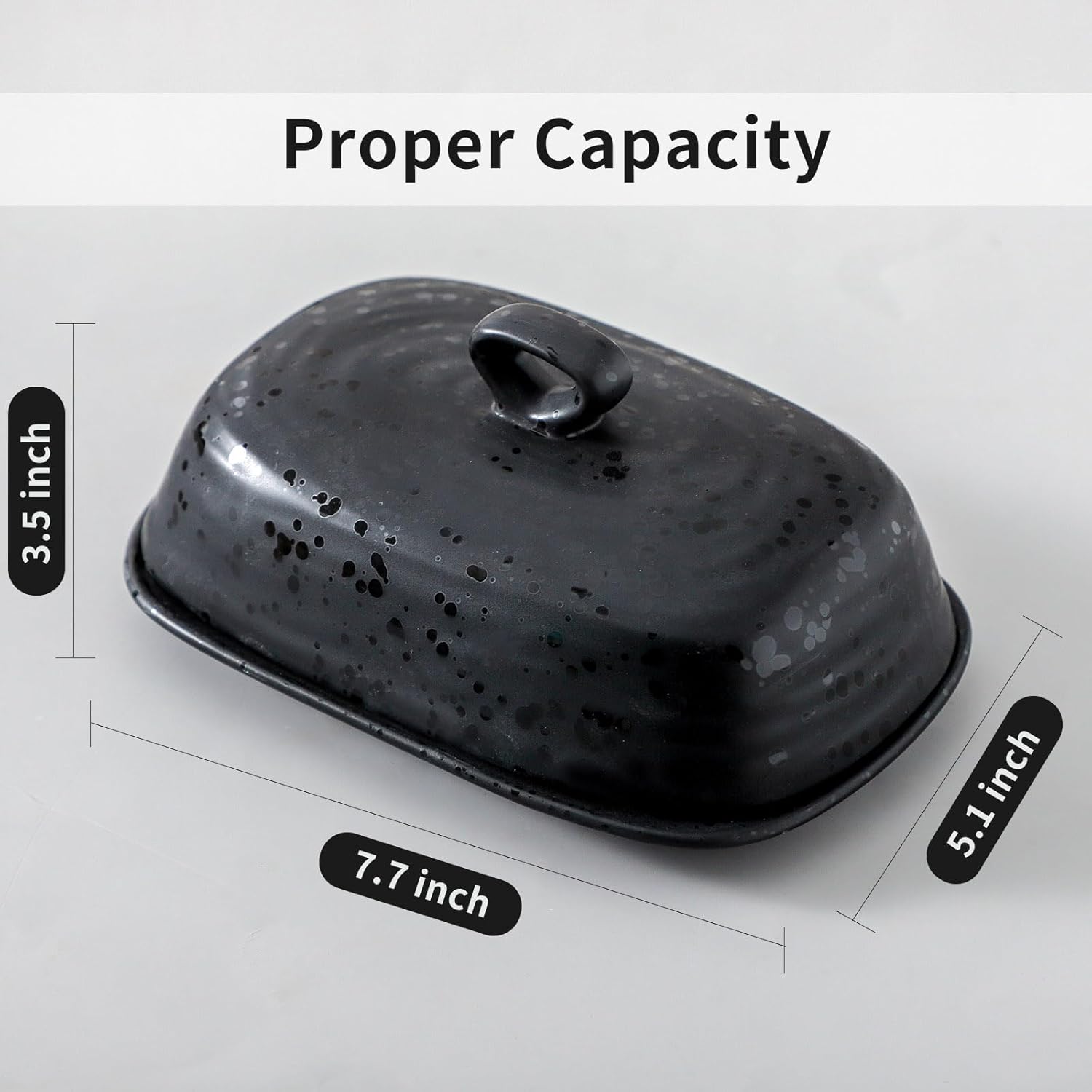 Hasense Porcelain Butter Dish, Large Butter Dish with Lid, Butter Holder with Cover, Butter Containe for West East Coast Butter, Modern Kitchen Decor, Wedding, Housewarming Gift, Black