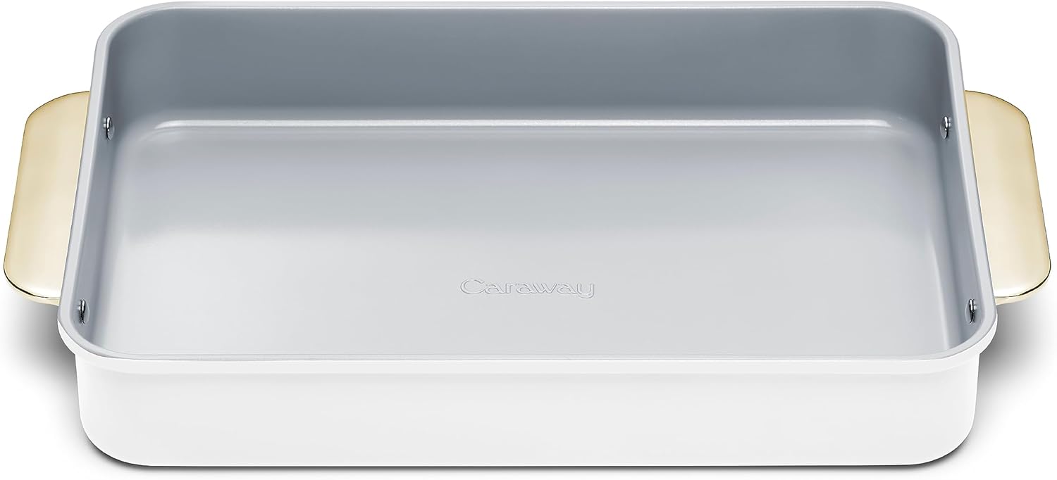 Caraway Non-Stick Ceramic 9”x13” Rectangle Pan - Naturally Slick Ceramic Coating - Non-Toxic, PTFE & PFOA Free - Perfect for Brownies, Lasagnas, and More - White