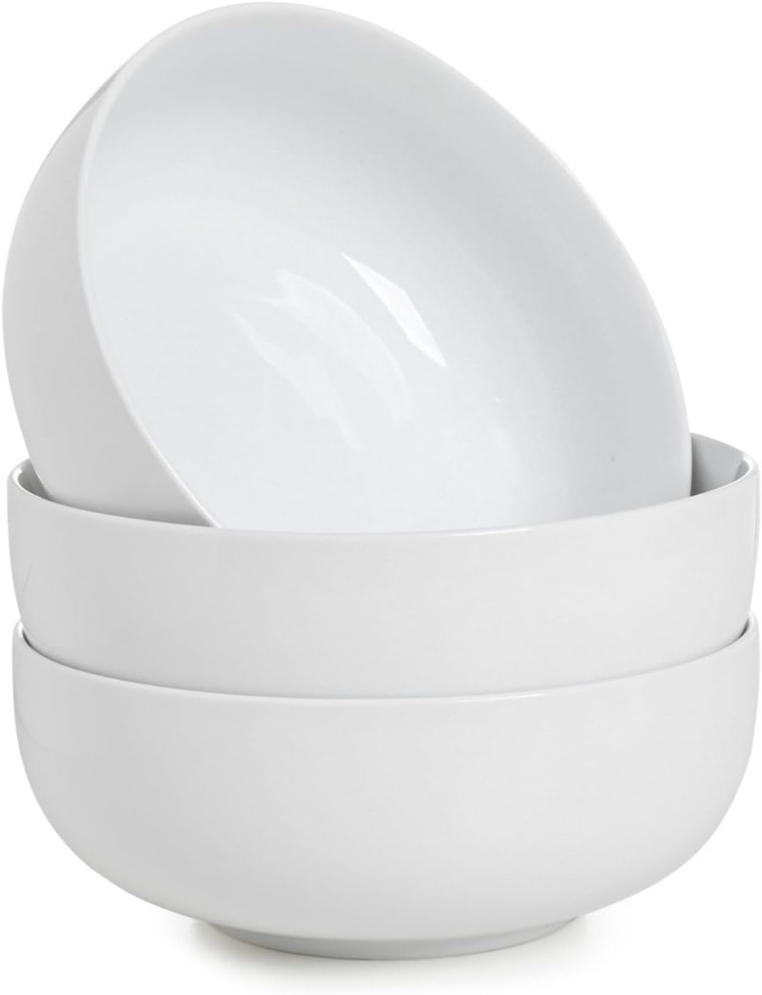 Large Soup Bowls Set of 3, Ceramic Salad Bowls 37 oz, White Pasta Bowls 7 inch, Serving Bowl for Cereal, Noodle Ramen, Pho, Fruit