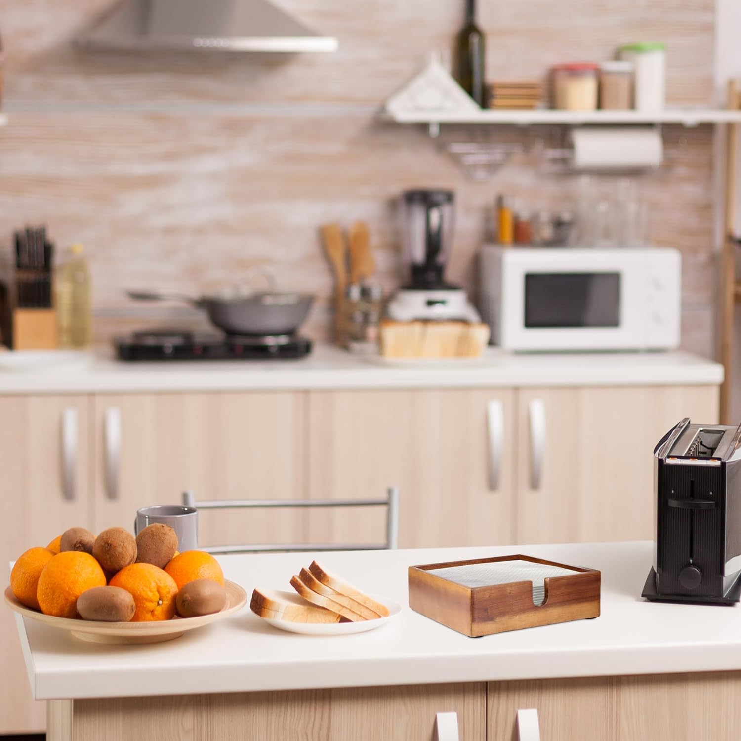 - Basic Kitchen Napkin Holder: If you are looking to add a touch of charm and utility to your dining experience, our Demigo napkin holder is what you need. This kitchen accessory comes in handy when placed in the appropriate spot during a meal, reducing the frequency of rinsing and drying hands.