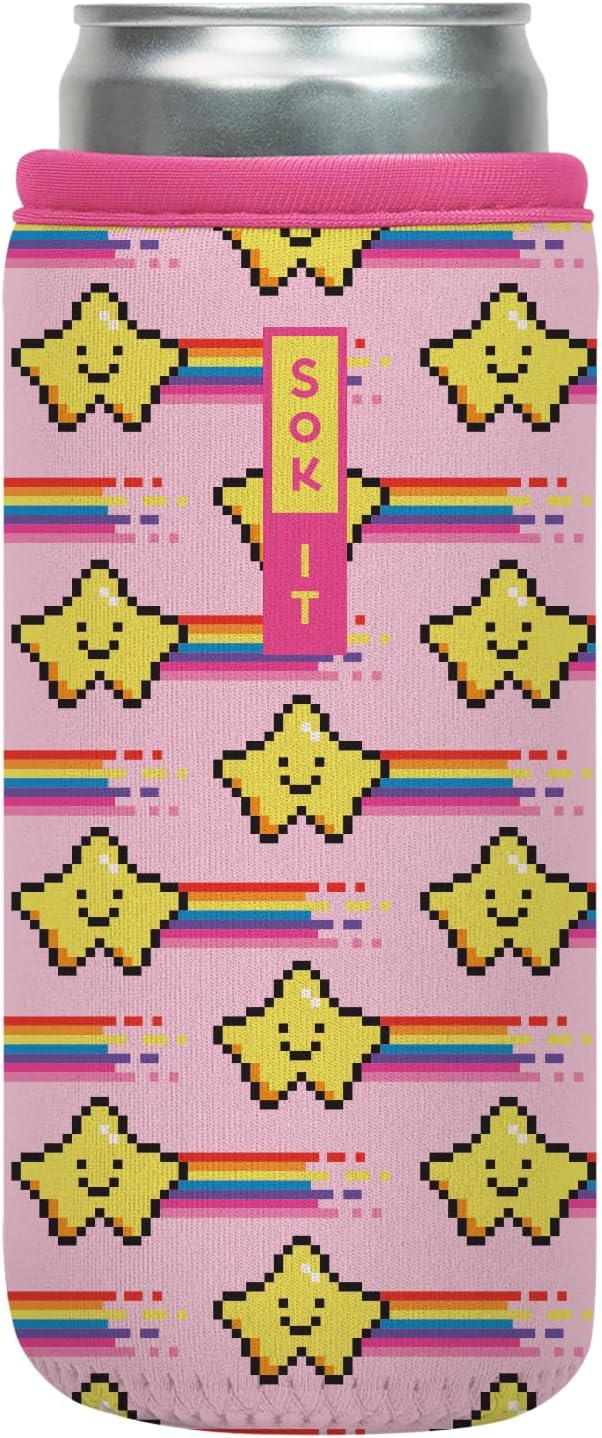 Sok It CanSok Sleeve for Beer & Soda Insulated Neoprene Cover (Super Star, 12oz Slim Can Sleeve)