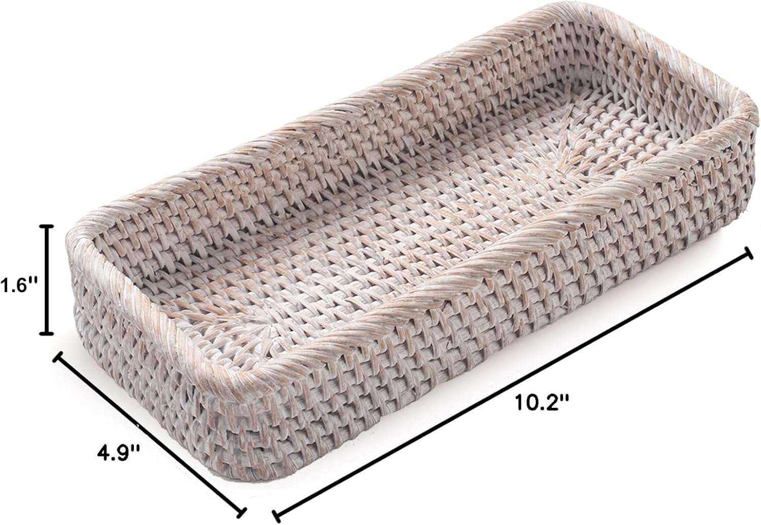 Rattan Bathroom Vanity Trays Toilet Tank Baskets Long Narrow Hand Towel Storage Basket for Storage, Decorative (Whitewash 10.2 x 4.9 x 1.6 inch)
