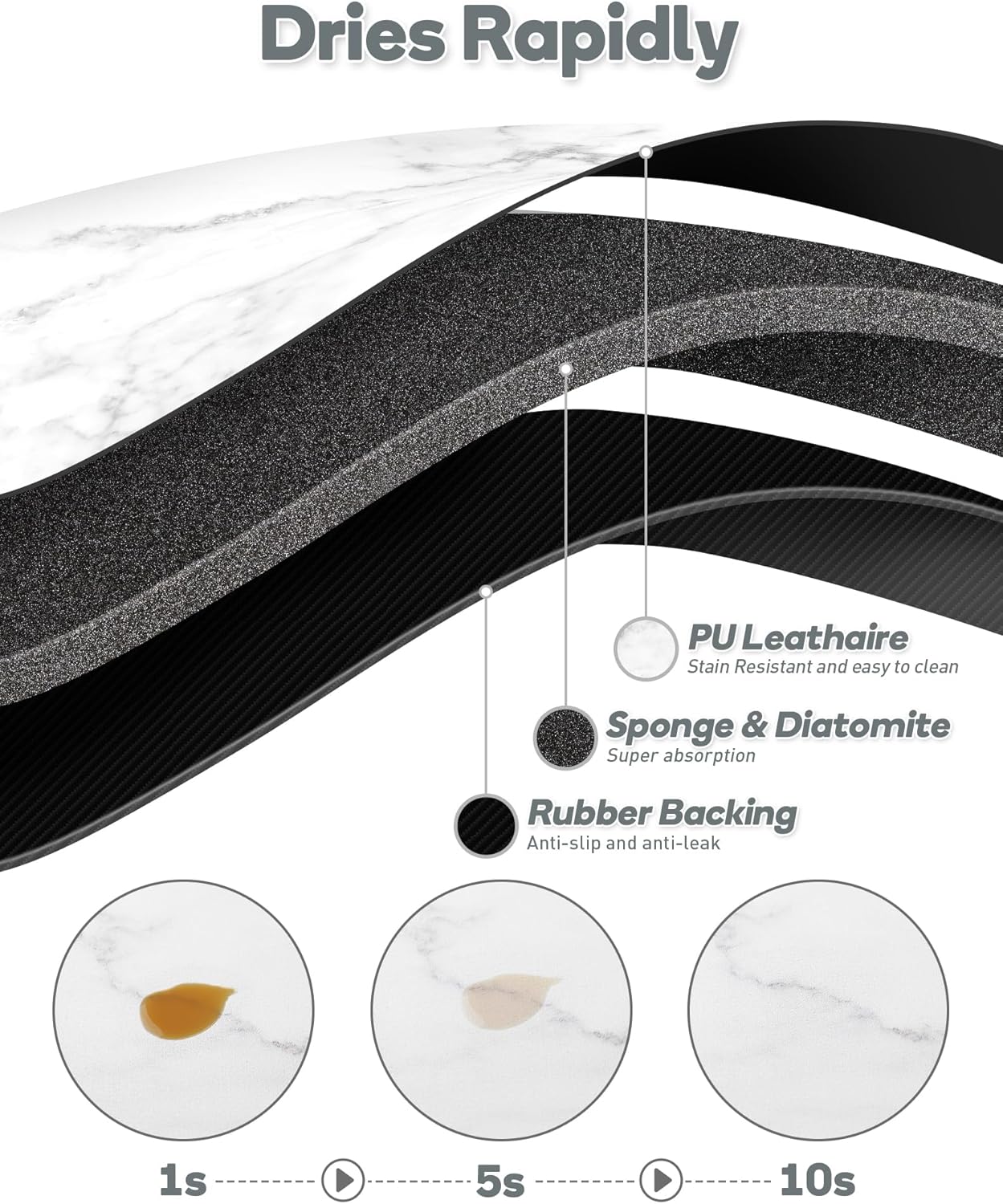 SUEH DESIGN Coffee Mat, Absorbent Dish Drying Mat 23.6 x 15.7 in Quick Dry Coffee Mat Large Drying Mats for Kitchen Counter Coffee Bar, Marble White