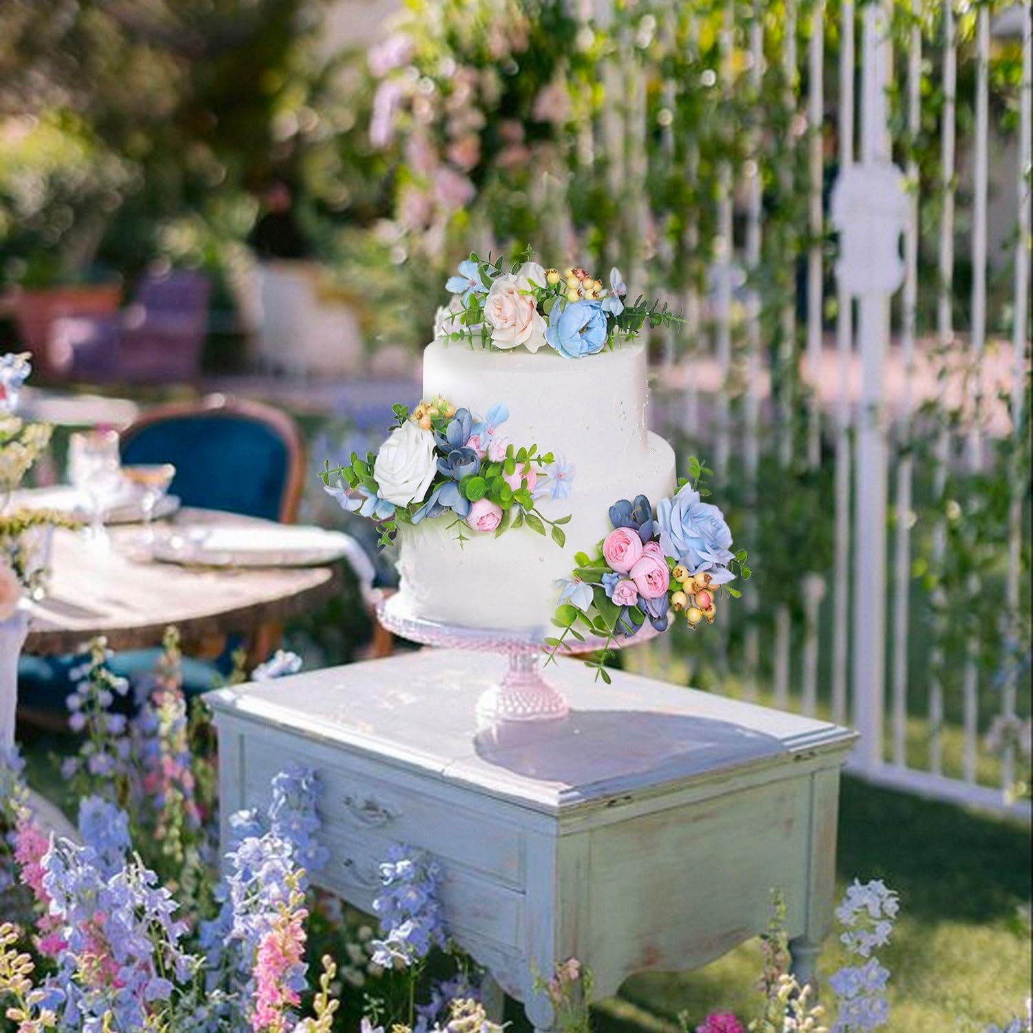 - Pastel Perfection: This Baby Blue & Blush Cake Flowers Set is designed to add a touch of pastel perfection to your cake. The gentle hues of baby blue and blush create an inviting and soothing color palette, making it ideal for events where a soft and elegant aesthetic is desired.