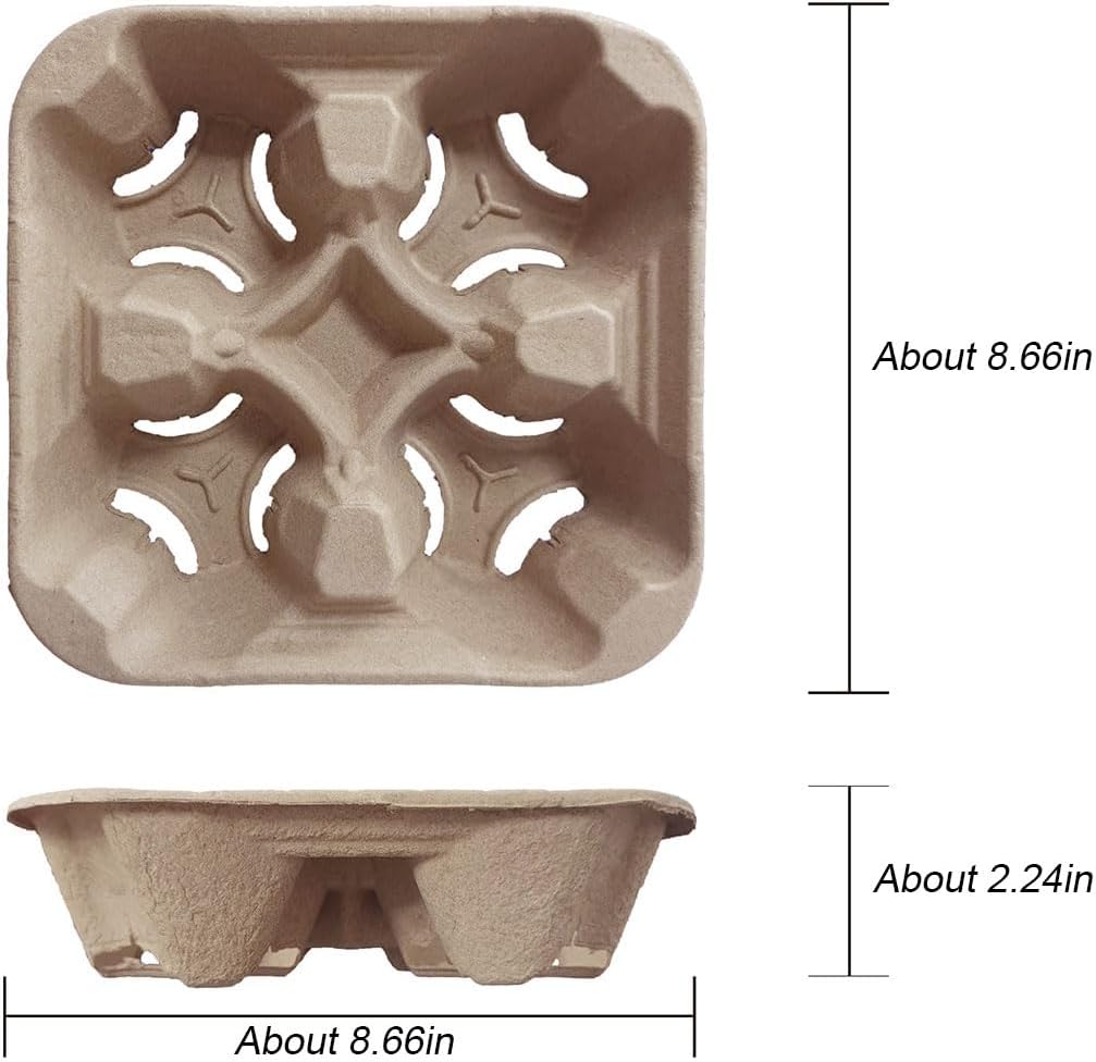 Disposable Compostable 4 Cup Drink Carriers,w/Extra-Deep Slots Secures 8-32oz Cups, Durable Pulp Fiber Holder for Coffee/Bubble Tea/Soda - Delivery, Takeout,Restaurants (100 Pack)