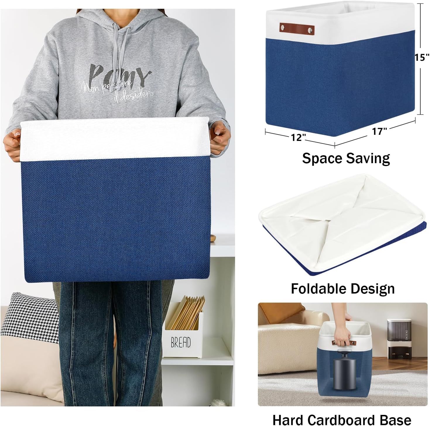 DULLEMELO Extra Large Storage Baskets, Fabric Storage Bins for Organizing Shelves Nursery Toys Books, Closet Baskets and Bins with Handles, White&Blue, 2-Pack