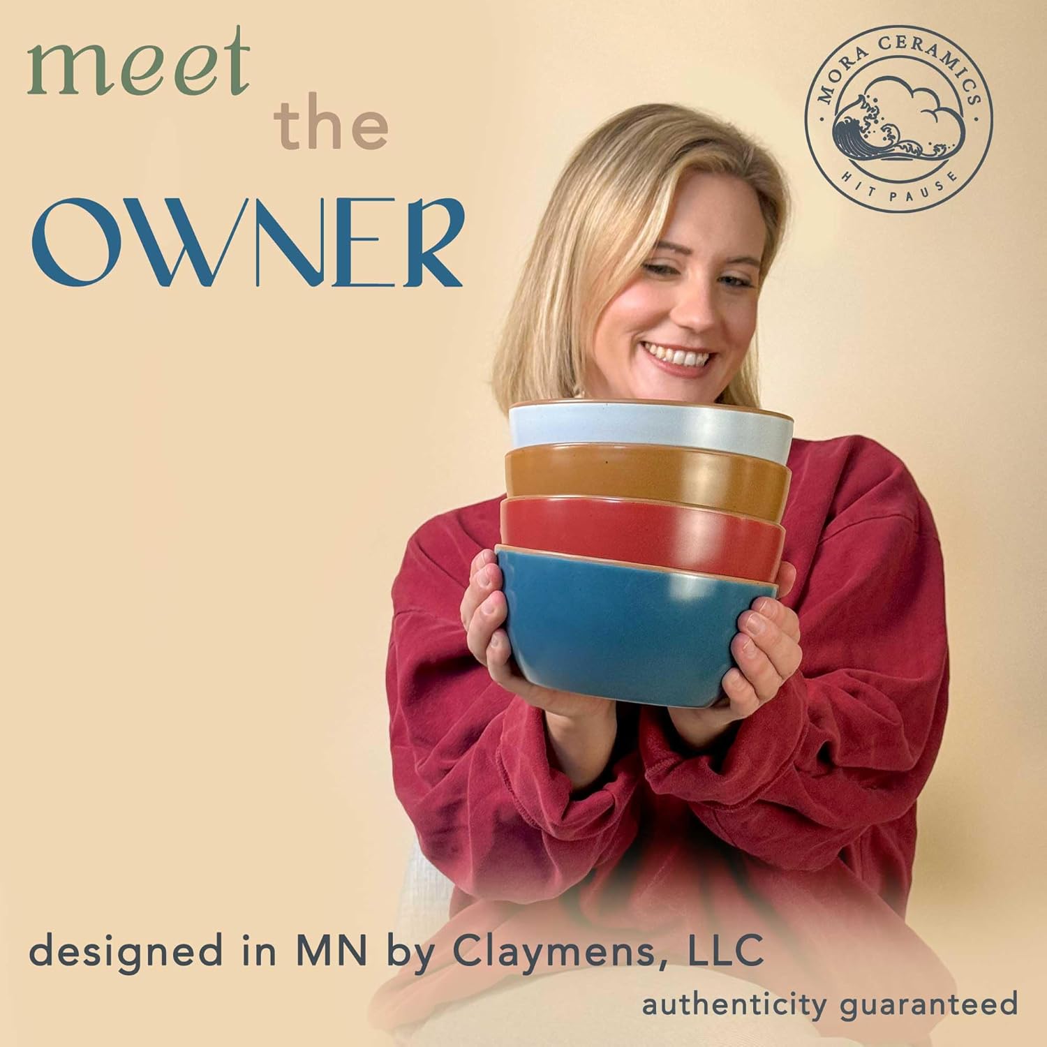 Mora Ceramic Artisan Matte Bowls For Kitchen 28oz - Bowl Set of 4 For Cereal, Salad, Pasta, Soup, Dessert etc - Dishwasher, Microwave, and Oven Safe - For Breakfast, Lunch and Dinner - Marina Colors