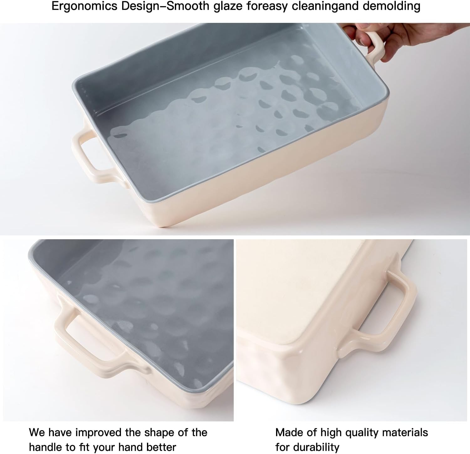 - 【EASY TO CLEAN】 The ceramic baking dish's non-stick smooth glaze and textured base make cleaning a breeze. Simply hand wash or place in the dishwasher for a quick and easy cleanup.