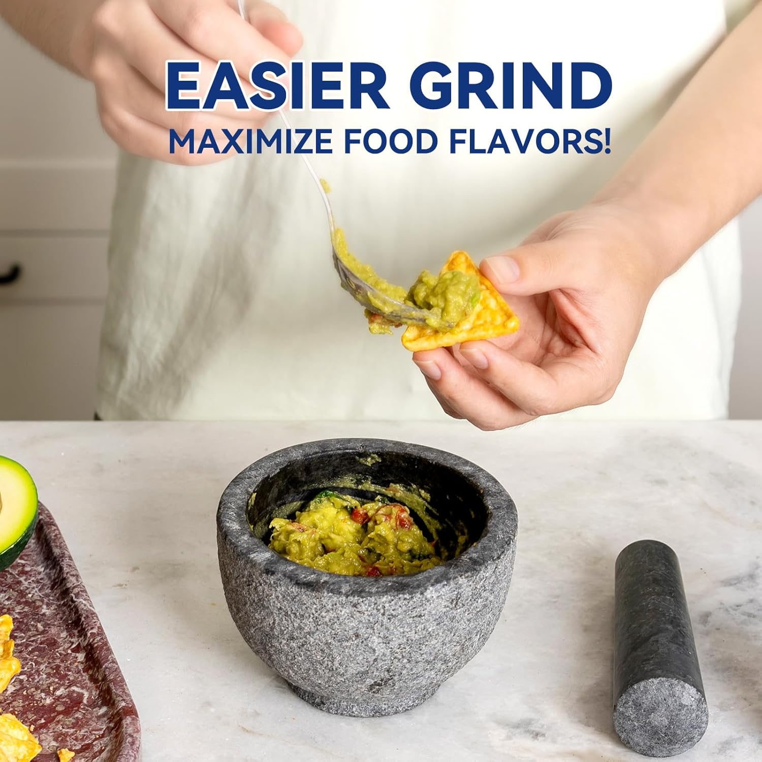 - 【Widely Use】The Mortar and Pestle set can be used for grinding dry ingredients, spices... Also perfect for guacamole and a great option for grinding sauces, fruit salad, pills, nuts etc. Meeting all your grinding needs.