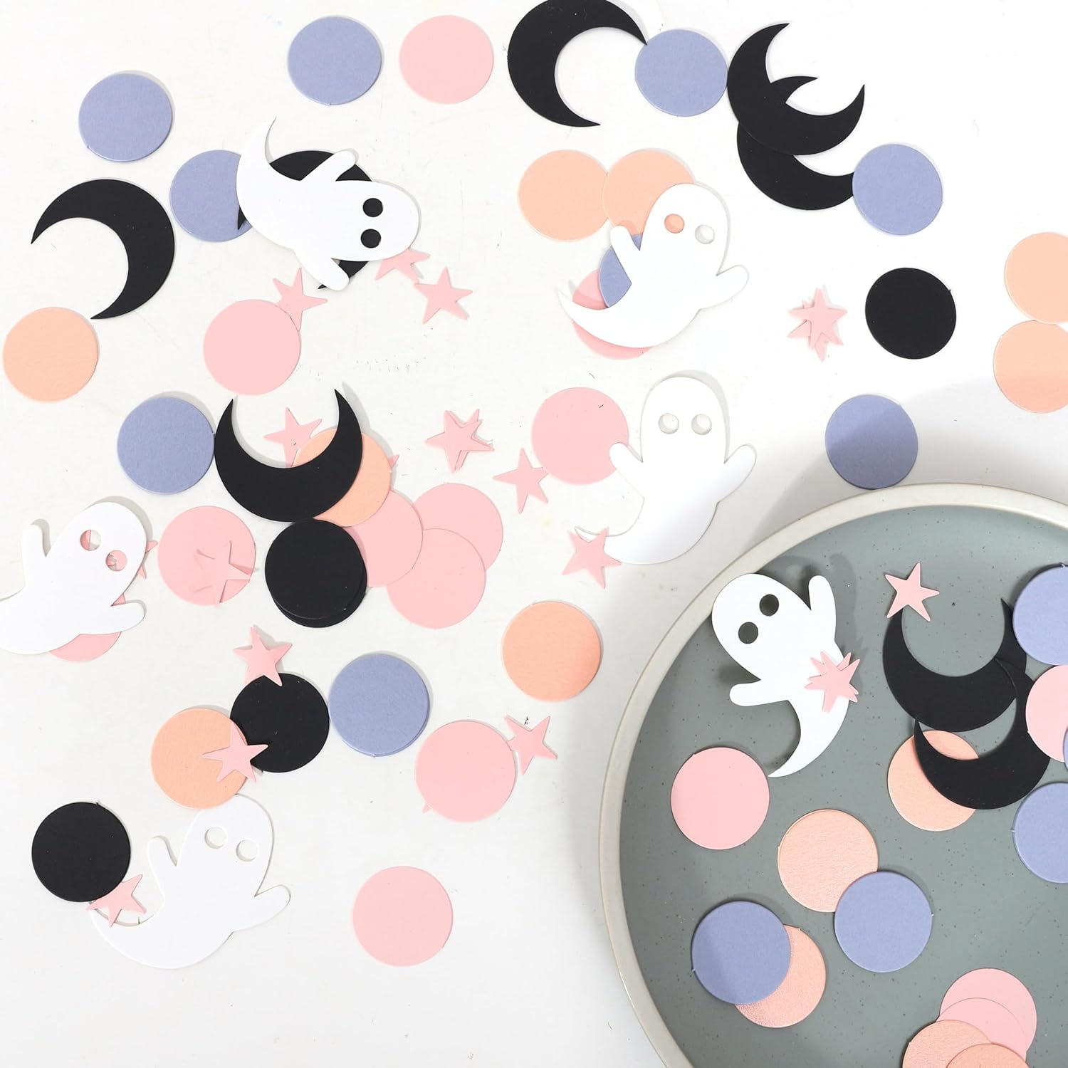 - SPECIAL DESIGN - Our confetti mix includes a variety of pink circle shapes, cute white ghost, and black moon, adding a whimsical and girly aspect to your Halloween decor. Shades of pink ranging from soft pastels to vibrant hues make this confetti mix visually appealing and perfect for the Halloween season.