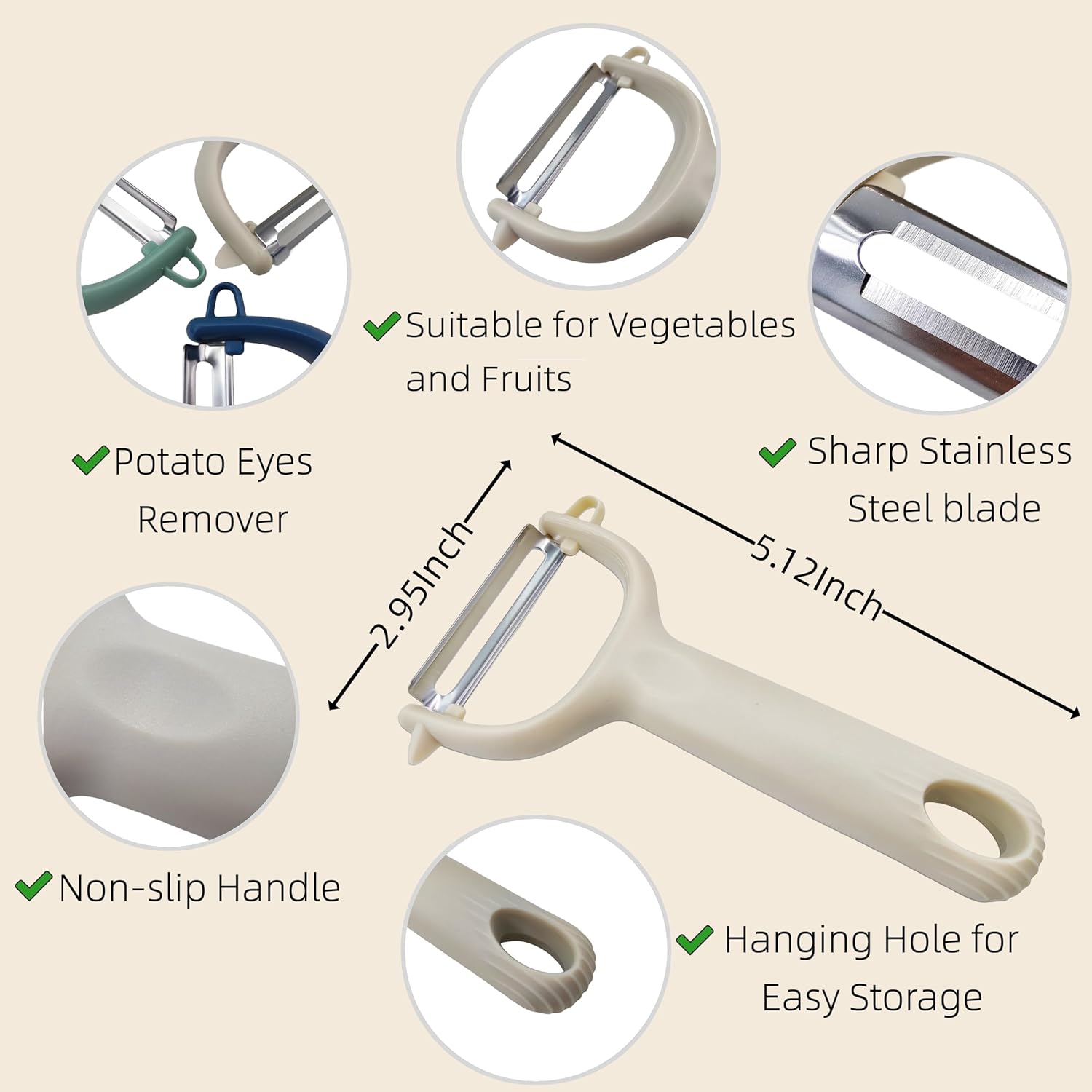 - 🍅【Multi-Purpose Fruit Vegetable Peeler】 It is the best Y shape apple peeler for peaches, tomatoes, zucchini,vegetables,potatoes, cucumbers, squash, carrots, eggplant,pears.With built-in potato eye remover, it is a high quality kitchen potato peeler, however, it may not be ideal for produce with softer skins such as oranges and corn.