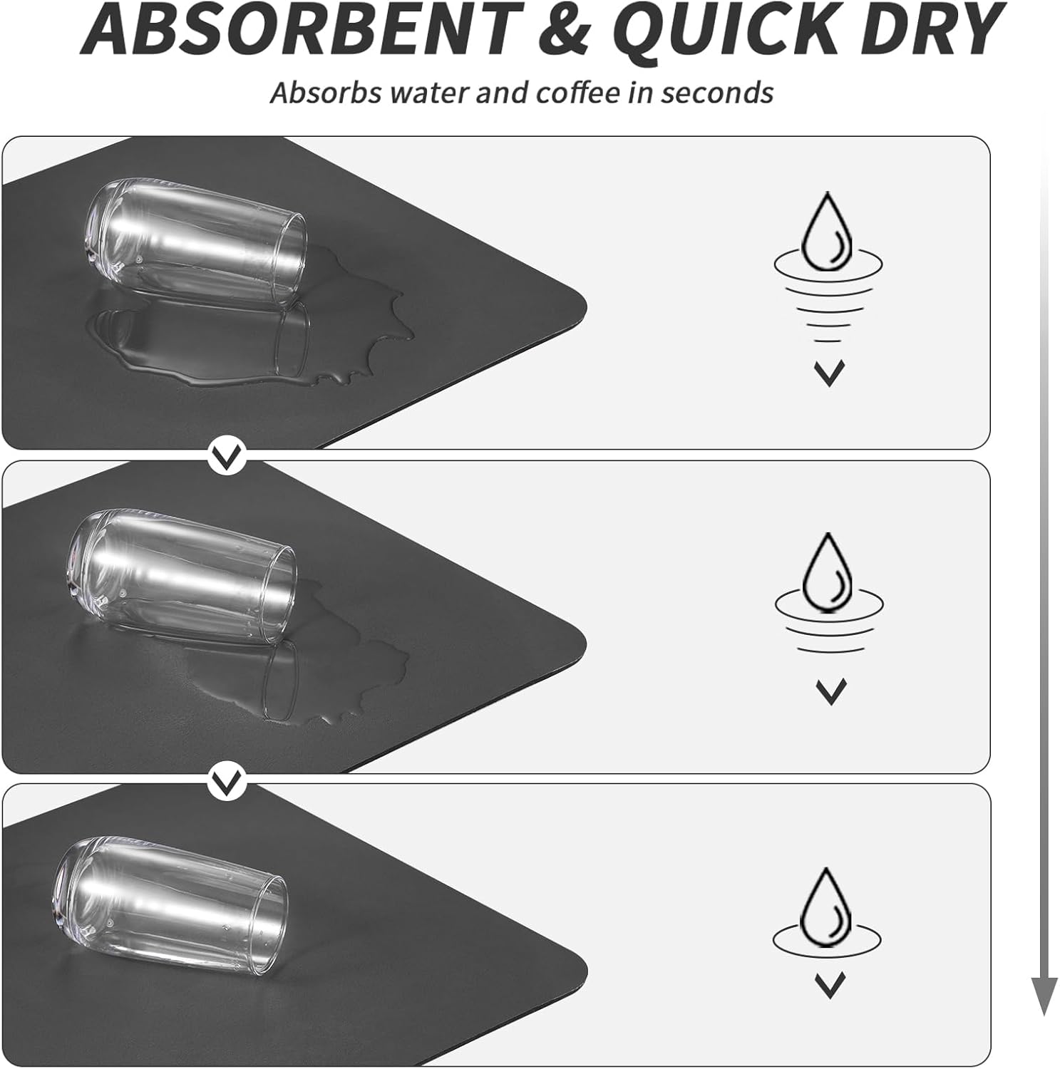 - ☕【Wide range of uses】 It is not just a coffee bar mat, but also a high water absorption and quick dry pad that can be widely used as a drying mat for kitchen countertop, cups, water dispensers, mixers, ice cream machines, dish washing racks, dinner plates, tableware, etc., or as a food pad for pets.