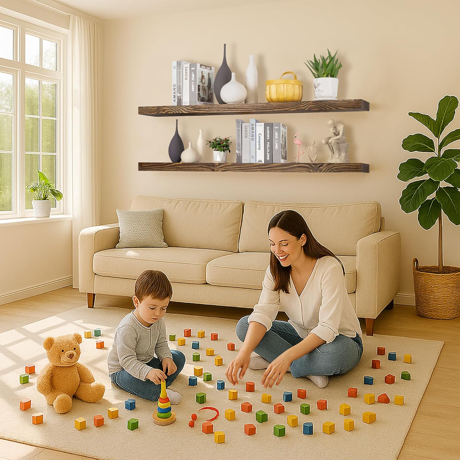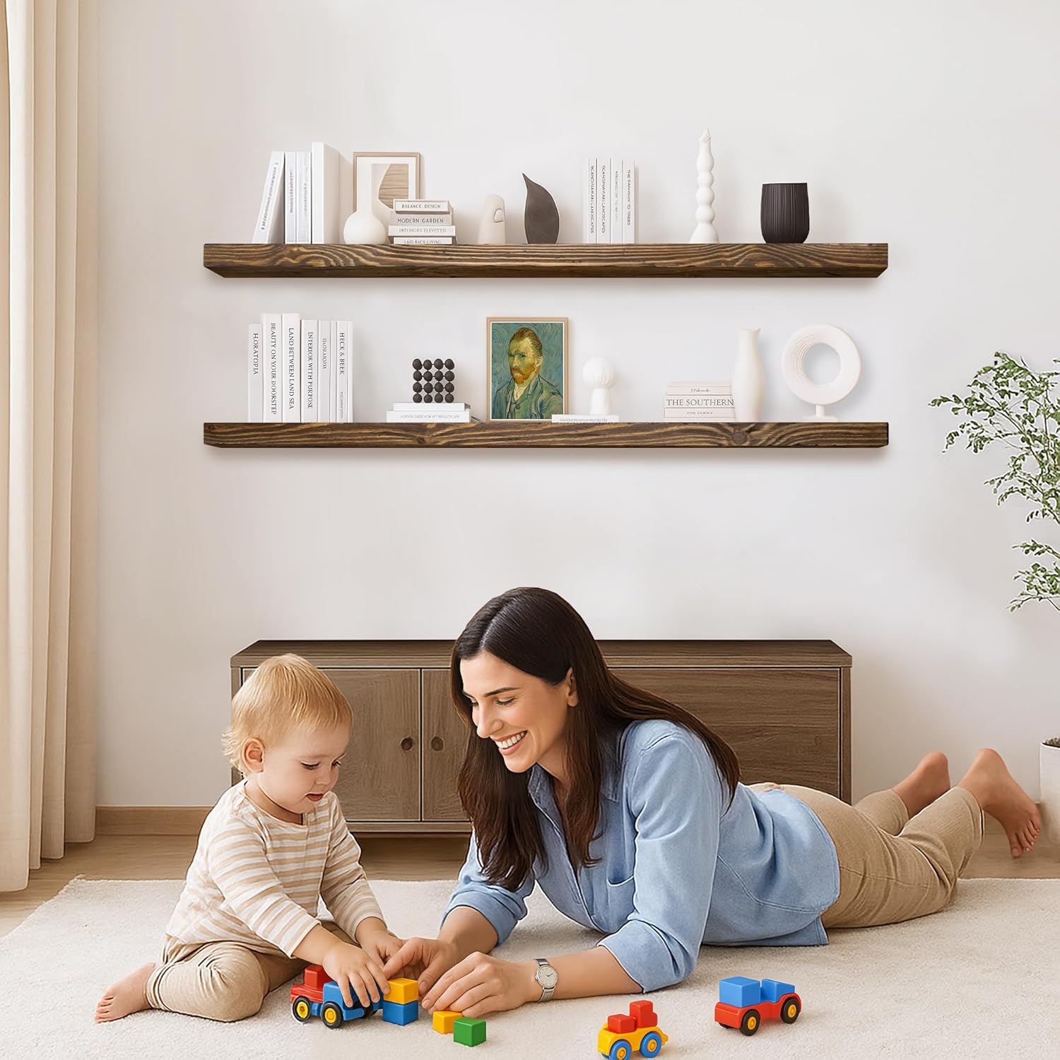 - Seamless Integration: The neutral finish of our floating shelf seamlessly integrates with a wide array of design aesthetics, making it an ideal addition to any home. Enhance your space with this functional piece that combines storage and style effortlessly.