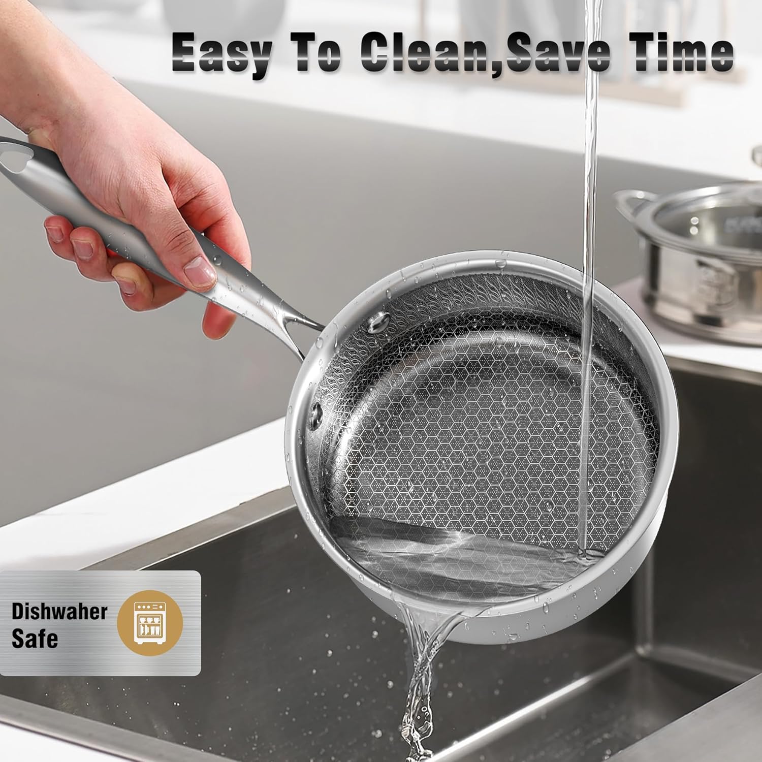 - Practical & Healthy: The sauce pan is made of high quality 18/10 stainless steel, which is strong and durable to prevent scratches, corrosion, warping and rusting. A honeycomb carving is etched into the interior of the cookware, making it 10 times more non-stick than traditional stainless steel pans! Non-toxic, Free of PTFE, PFOA, PFAS, lead, cadmium and other toxic substances.