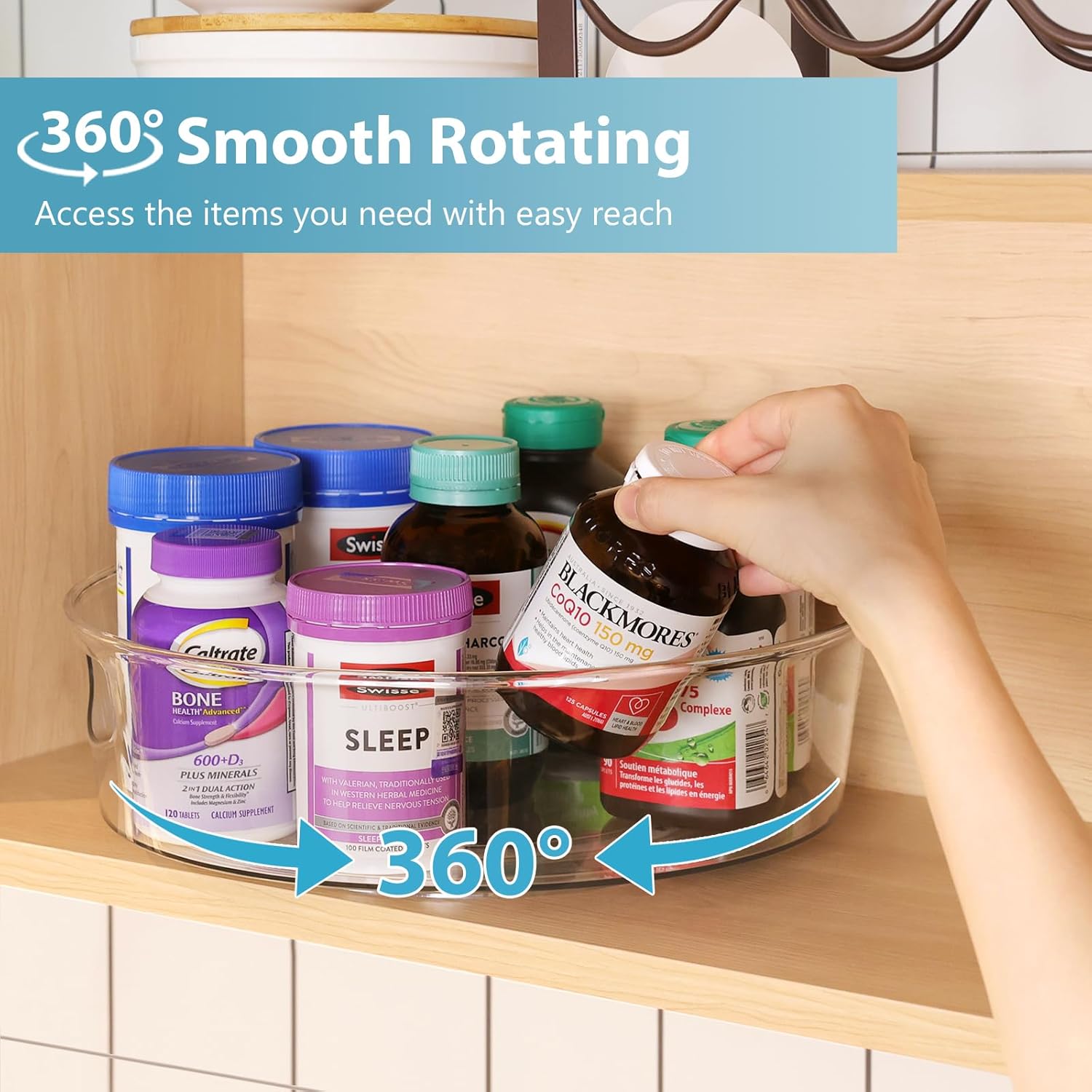 - 360°Rotating & Easy Access - 360°free spinning allows for easy access to hard-to-reach items, even in deep corner cabinets, no more reaching over things and knocking everything down. With a simple spin, you can easily find and get what you need without any hassle