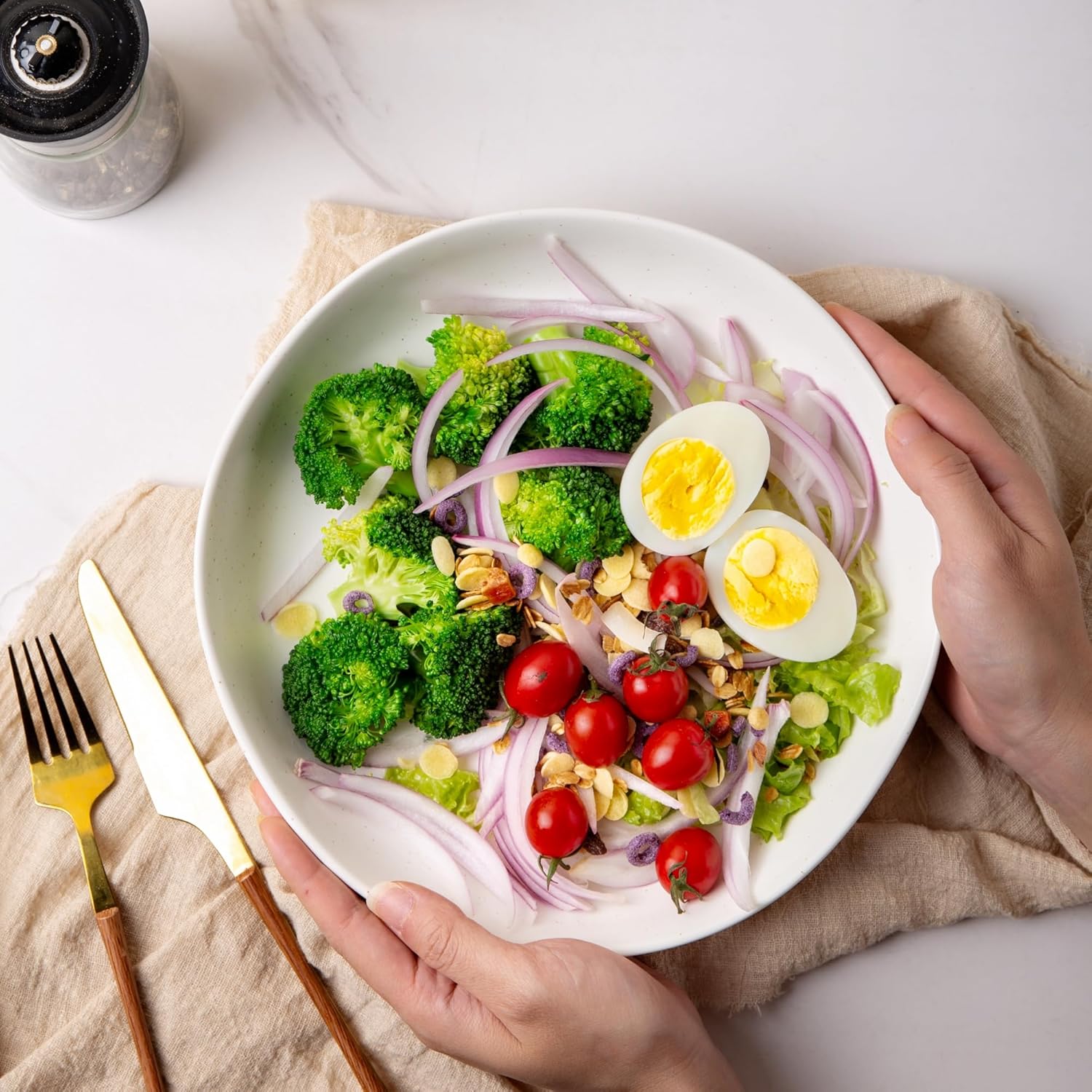- 38OZ & VERSATILE USE: It holds contents both solid & liquid with ease- perfect for salads, pastas & stews. You can easily fit 3-4 “normal” size portions in one dish, they have deep and wide design that keep the food in the bowl and not falling on the table! It is Perfect for family dinners, party and restaurant service.