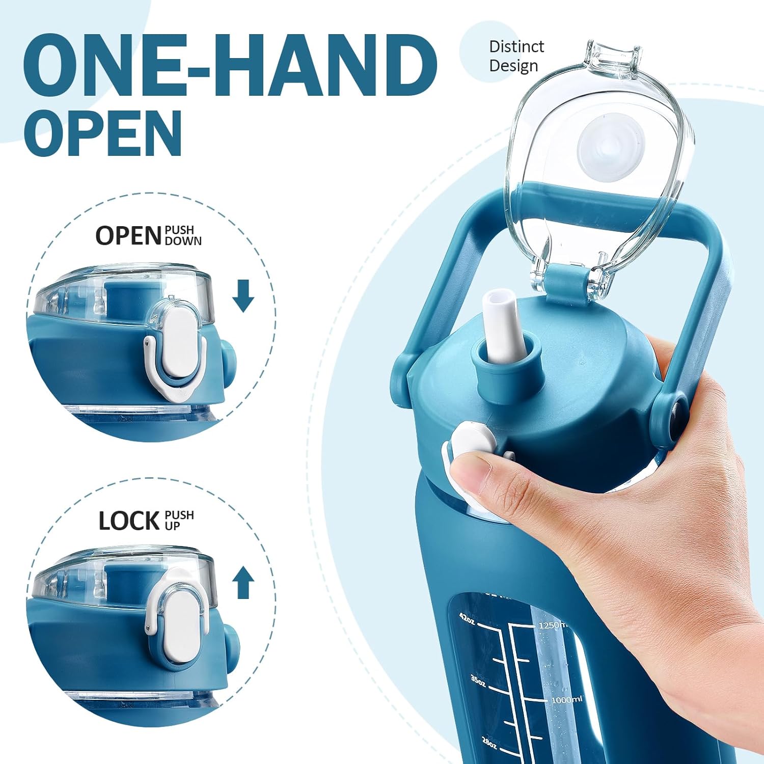 - ❤Glass Water Bottle with Pop-up Straw Lid- Kytffu large 56oz water bottle with straw is designed with an upgraded lid that ensures 100% leakproof and dustproof. Advanced one-click button makes you drink easier, just push the button and the straw will pop out automatically.