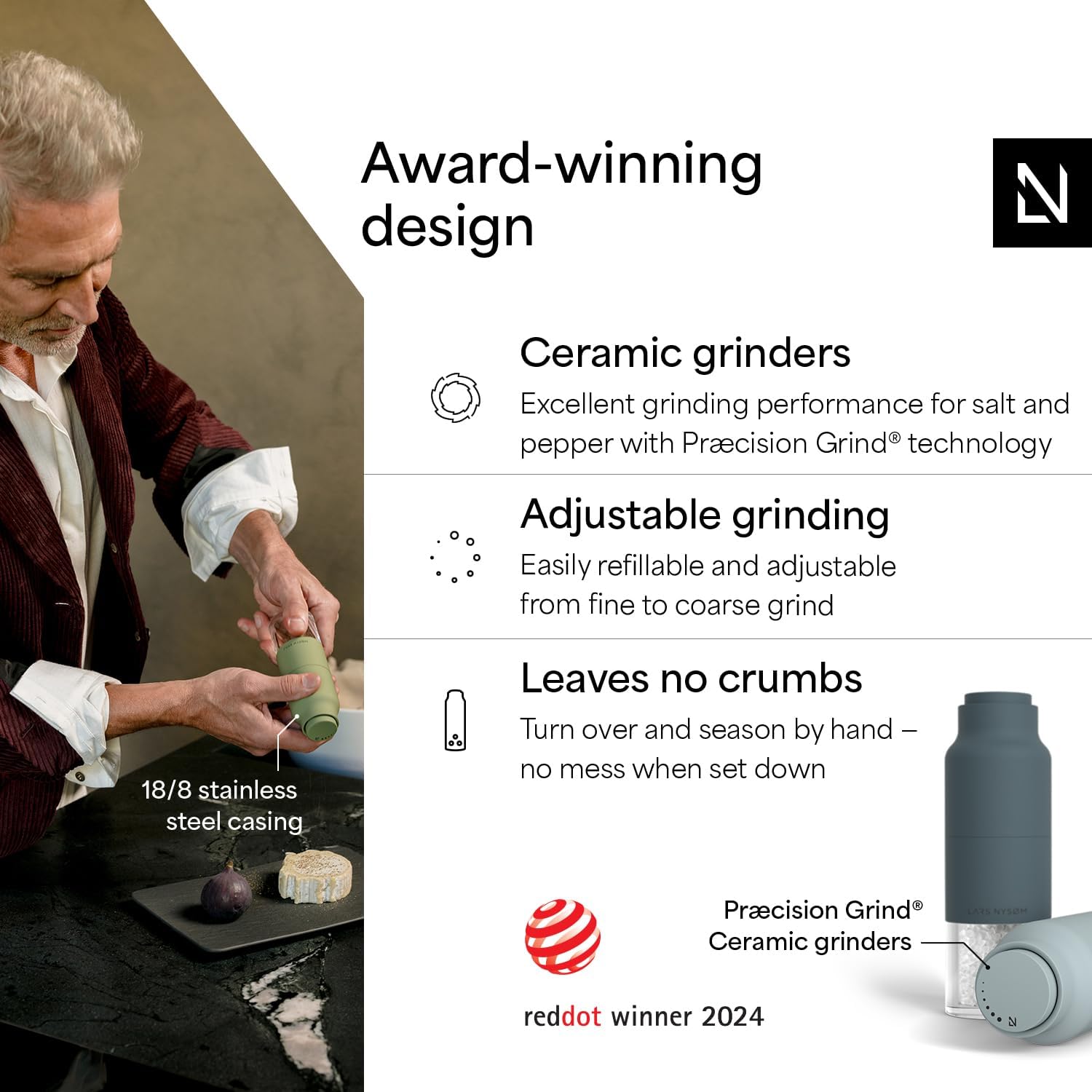 LARS NYSØM Salt and Pepper Grinder Set, Stainless Steel Manual Salt and Pepper Mills, Adjustable Ceramic Grinder, Design Spice Shakers (Blue)