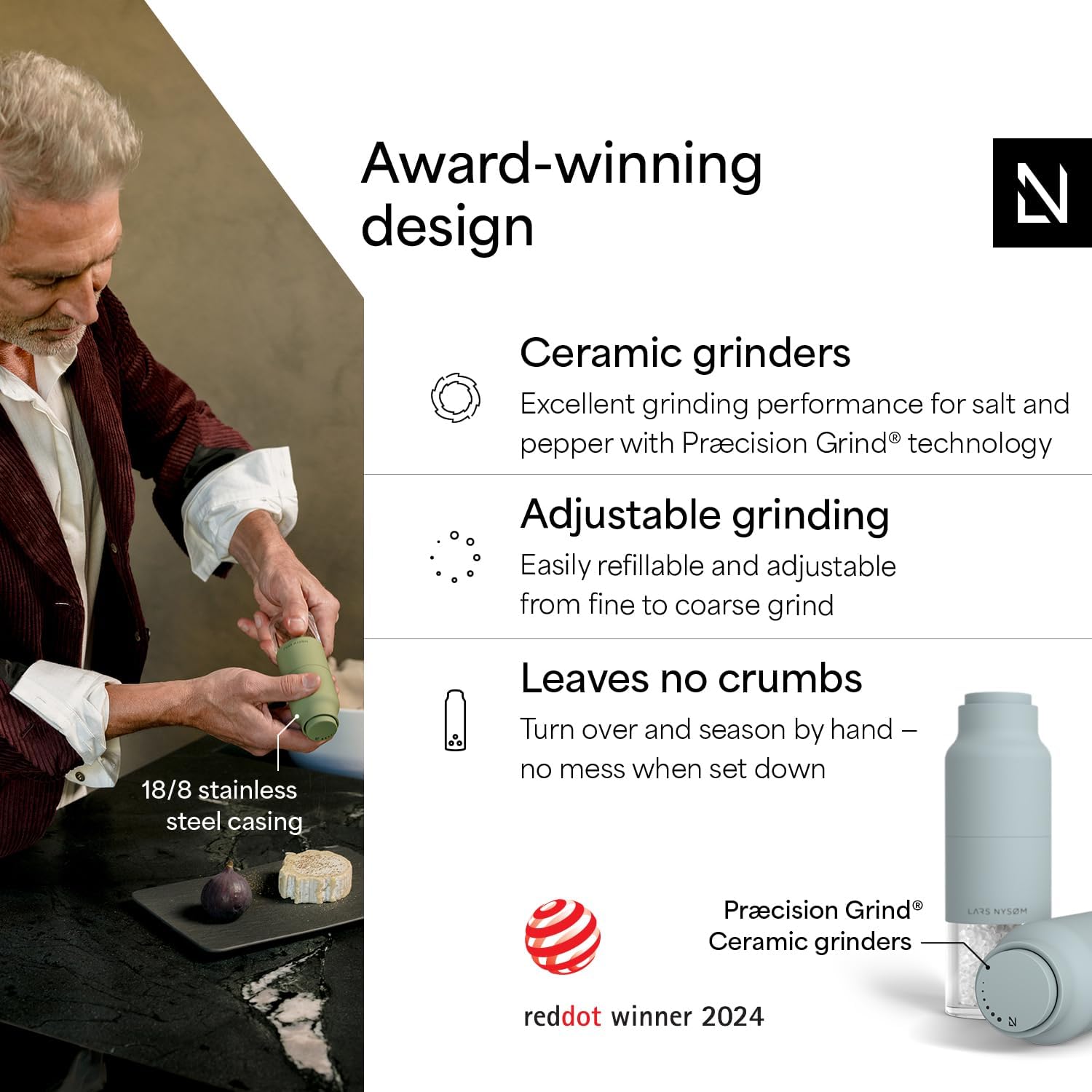 - DESIGN SPICE MILL SET (2 pieces): Our Salt and Pepper Mill Set "Omvendt" impresses with functionality and design. Perfect for everything that adds spice to life - such as pepper or salt.