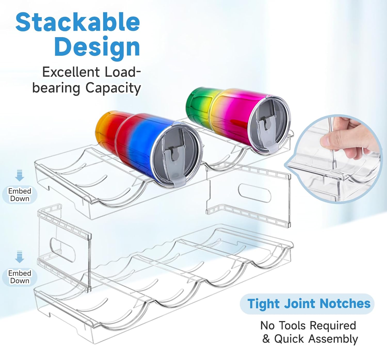 - SPACE SAVING: This water bottle organizer for cabinet has a free-standing, stackable design with stable connections, maximizing space efficiency. It can accommodate bottles of various sizes and shapes, providing individual slots to prevent bottles from tipping over or rolling, making it convenient to grab.
