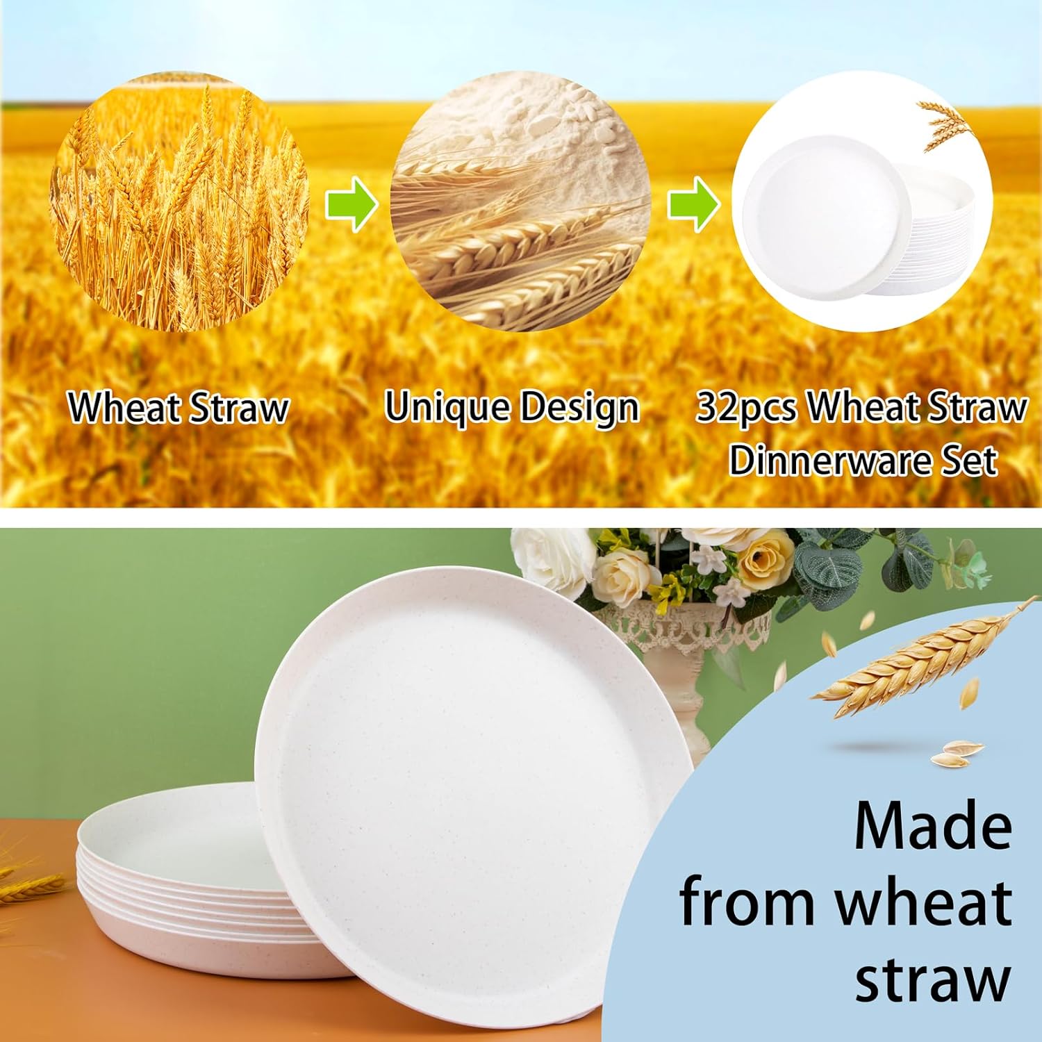 - Abundant Quantity-Never worry about running out of plates again! Our 18pcs white wheat straw dinner plates come in a generous set that will cater to all your meals and gatherings.