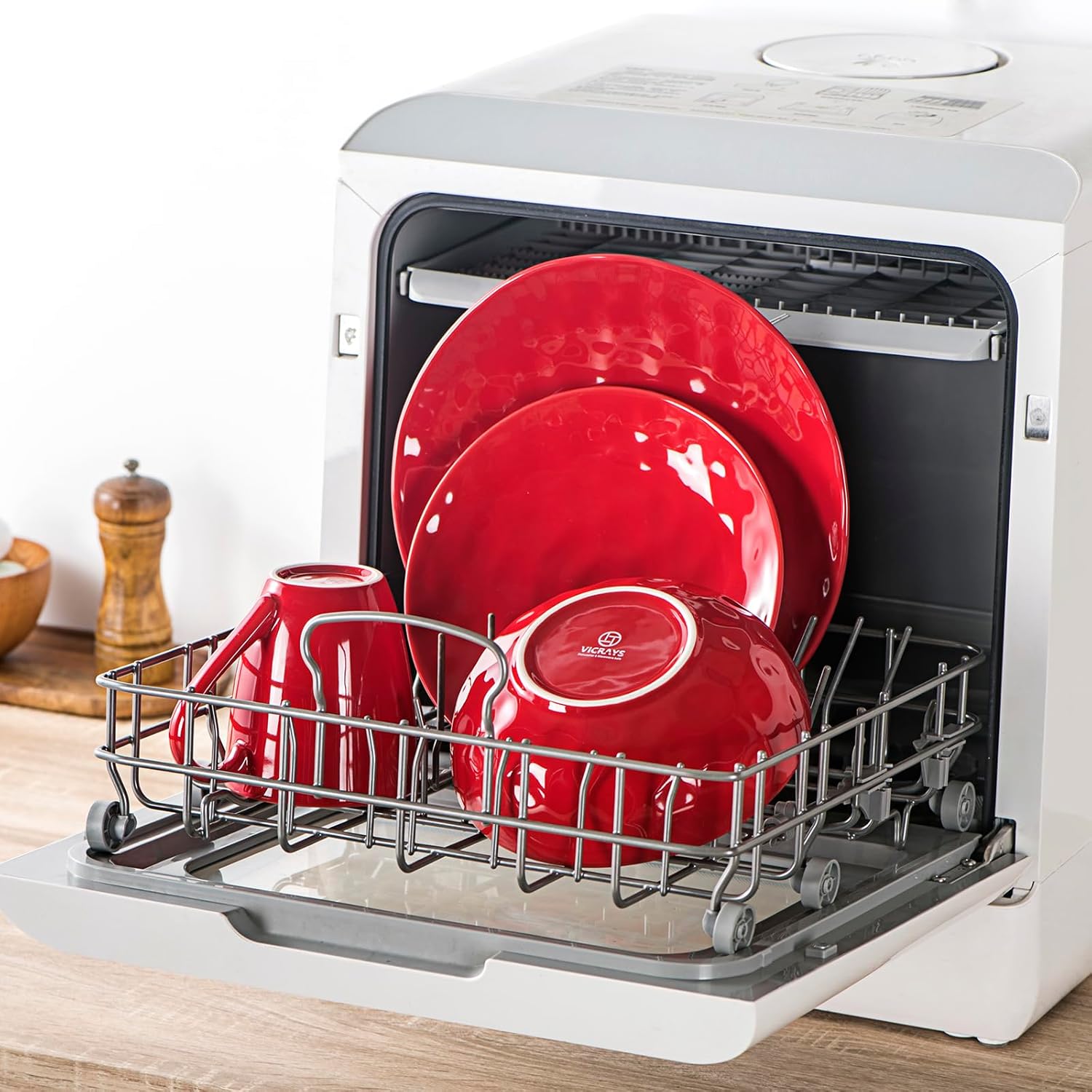 Vicrays Ceramic Pasta & Soup Bowls, Large Salad Bowls - Set of 6 Red, Fluted Stoneware, Dishwasher & Microwave Safe
