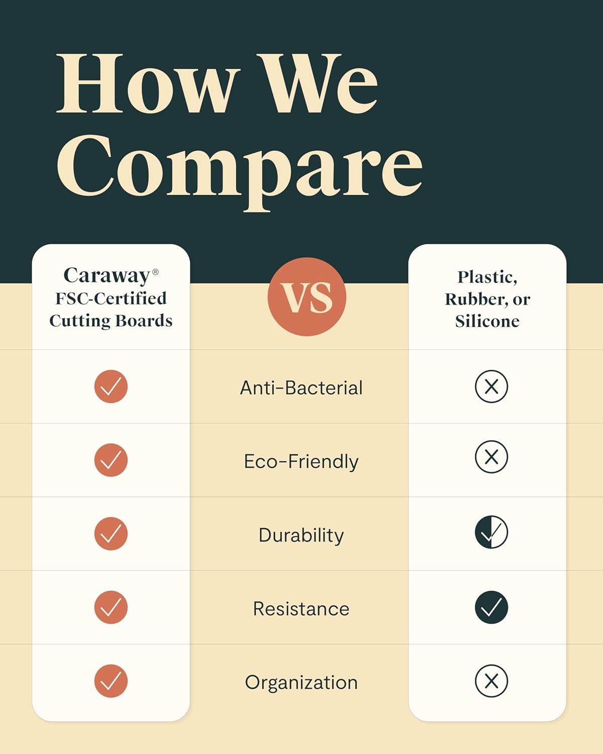 - EFFORTLESS ORGANIZATION: The set of Cutting Boards comes complete with a storage organizer and versatile recessed indents that seamlessly integrate with Caraway’s kitchenware, keeping your kitchen tidy and organized.