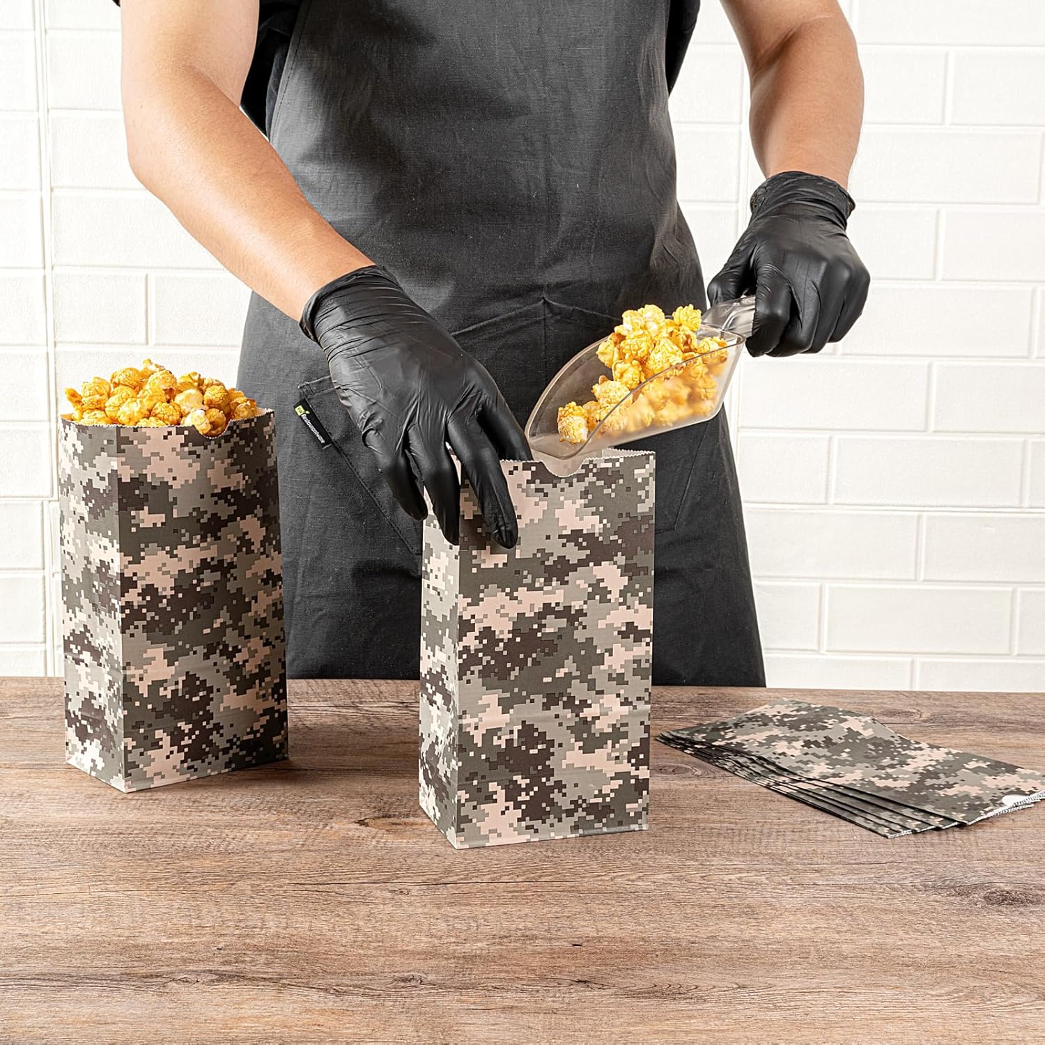 - STYLISH DESIGN: With a camouflage print, these paper bags boast a classic look that blends into any environment. These are great for taking food or other objects to any occasion!