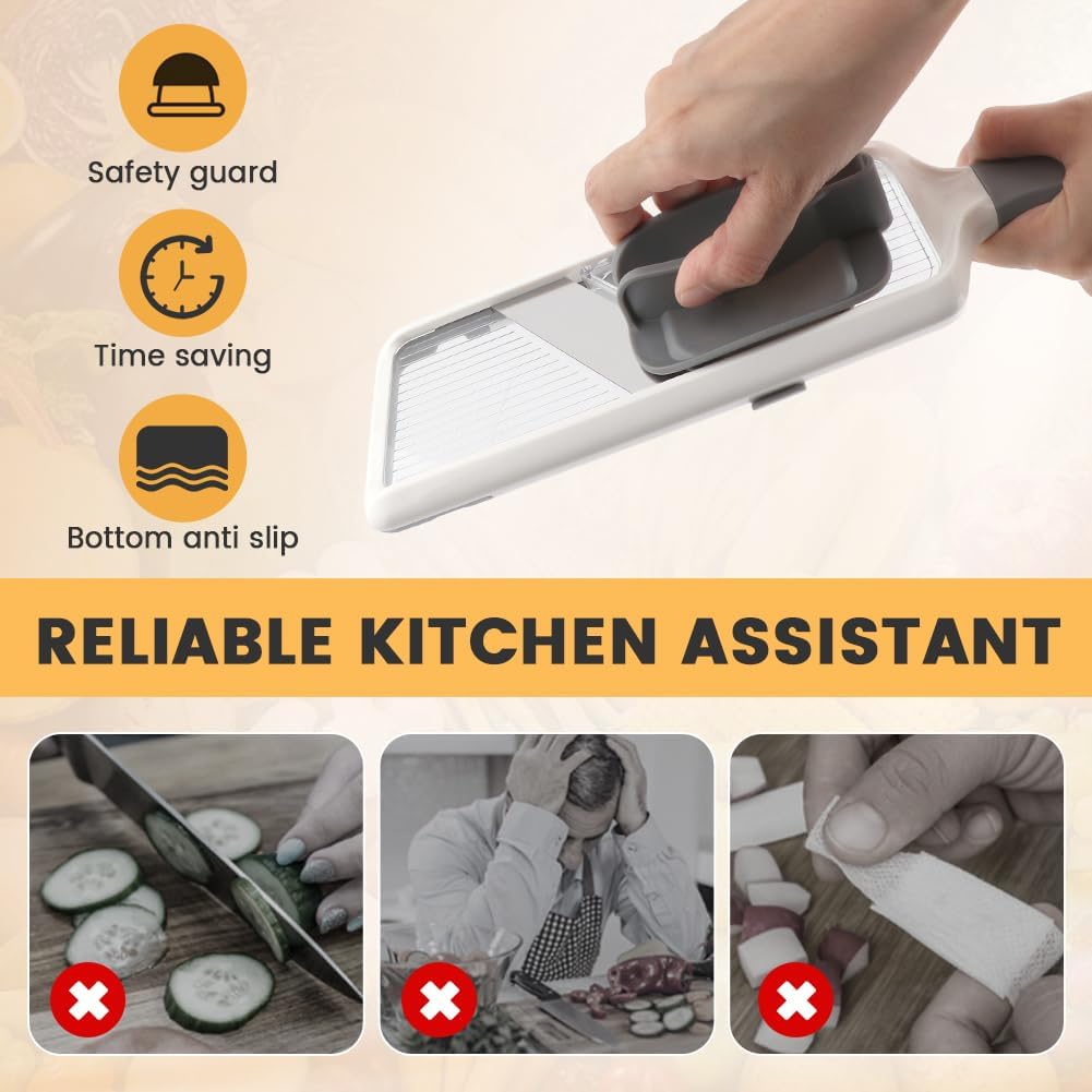 Multi Handheld Mandoline Slicer with Adjustable Stainless Steel Blade, Veggie Chopper & Cheese Grater, Mandolin French Fry Cutter for Speedy Slicing of Fruits and Vegetables