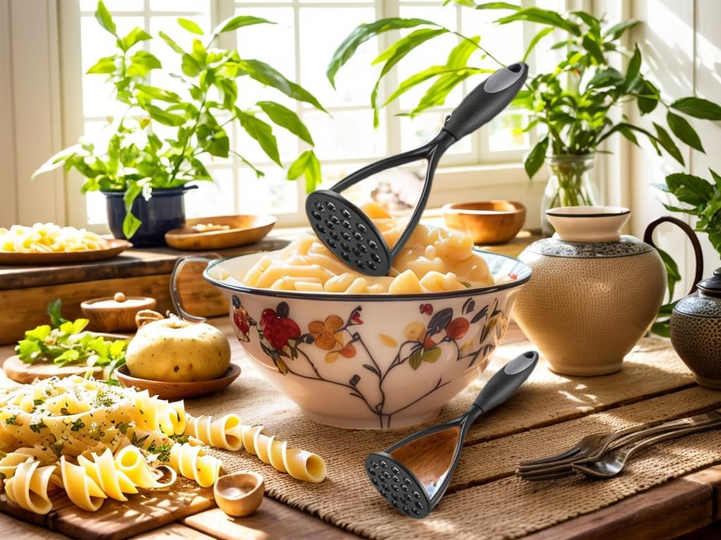 - FUNCTIONABLE: Easily mashes potatoes, bananas, avocado masher; Thick Sturdy & Comfortable Design with the Rubber Wrapped Handle