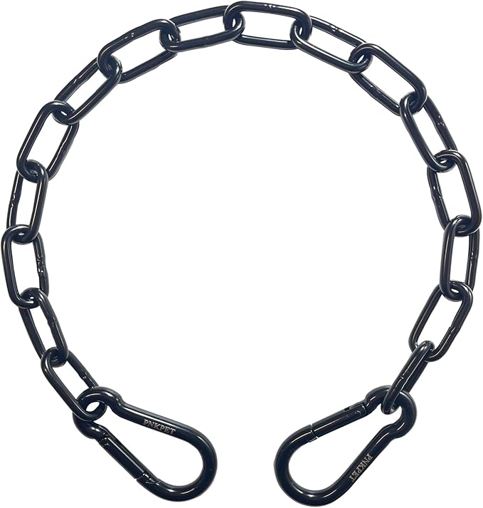 - Shopping Guide - The product includes one large 20-inch long stainless steel chain and two medium-sized carabiners. The color is black, and it weighs 12.2 ounces. Please feel free to contact us if there is any missing product accessories or any problems in use.