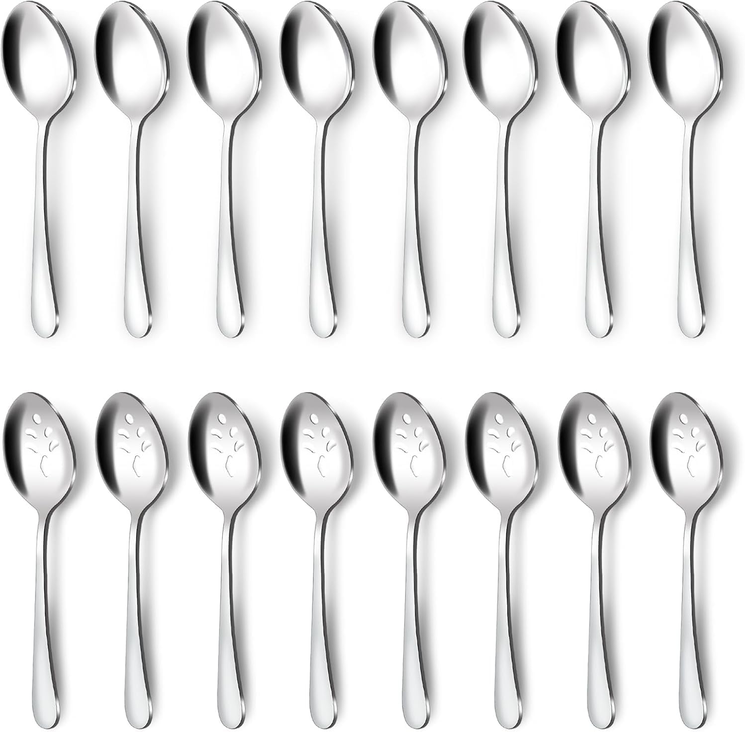 BEWOS 16-Piece Serving Utensils Set, 8 Spoons & 8 Slotted Spoons, 9.1-Inch, Stainless Steel, Dishwasher Safe, Perfect for Parties & Buffets