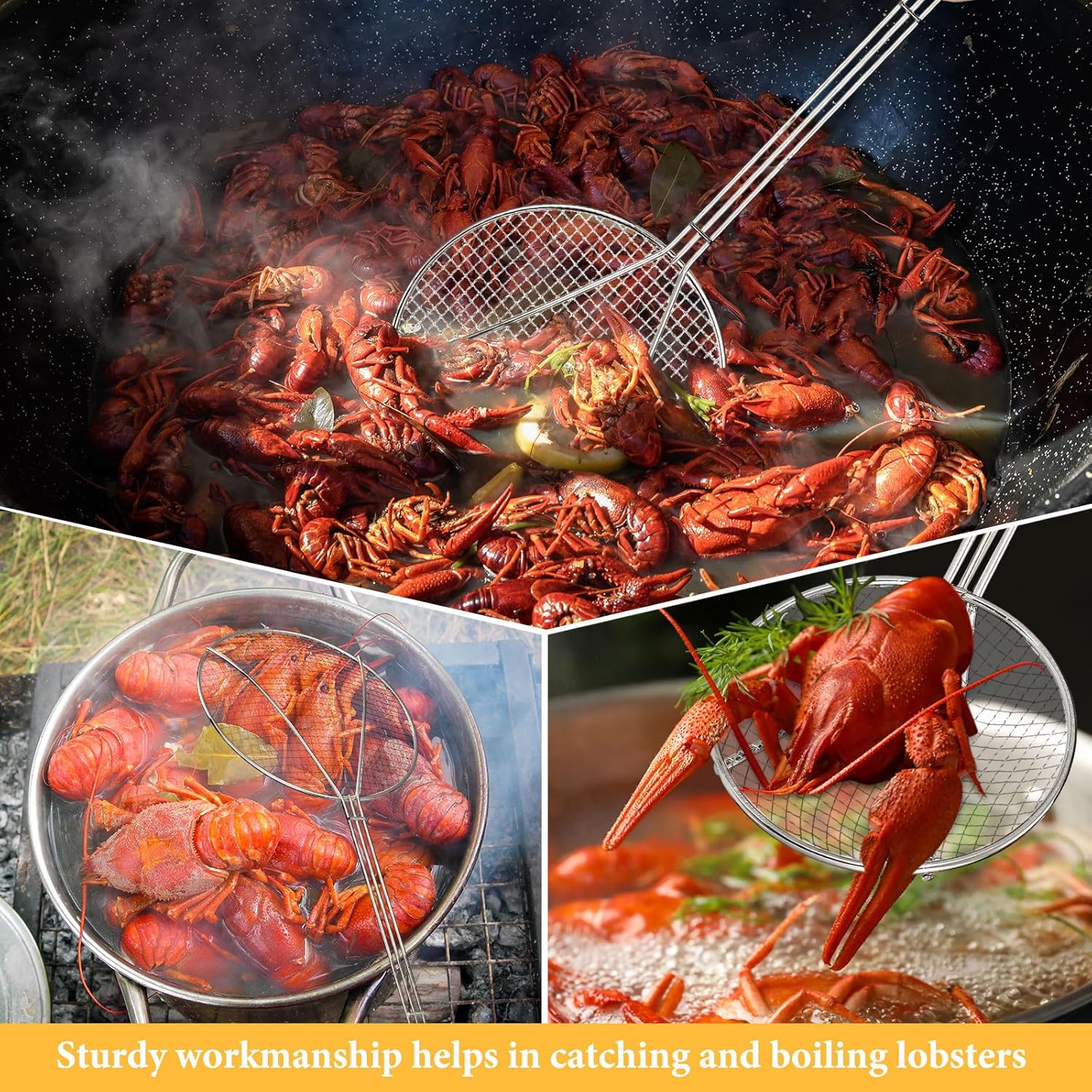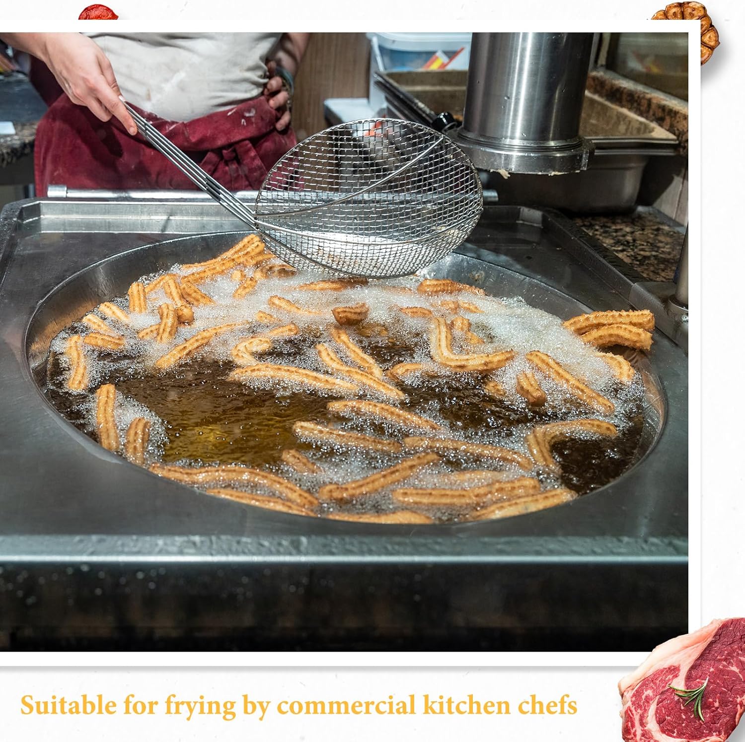 - Ideal Size for Various Uses: the fryer skimmer measures about 9 inches/ 23 cm in diameter, about 27 inches/ 68.5 cm in handle length and about 36 inches/ 91.5 cm in whole length, offers versatility in use and allowing users to reach into deep pots and fryers without the risk of burns; This makes it a handy tool for many cooking tasks