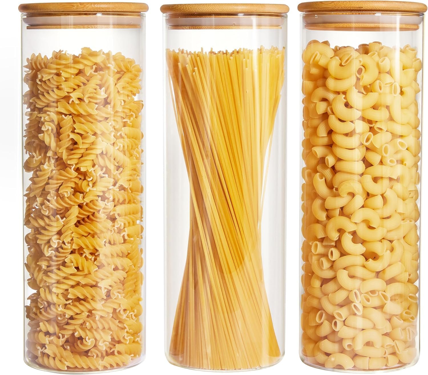 Glass Food Storage Jars with Lids[Set of 3], Perfect for Pasta, Cookies, Nuts, Coffee, Cereal, Flour, and More, Organize Your Kitchen and Pantry with these BPA-Free Glass Canisters