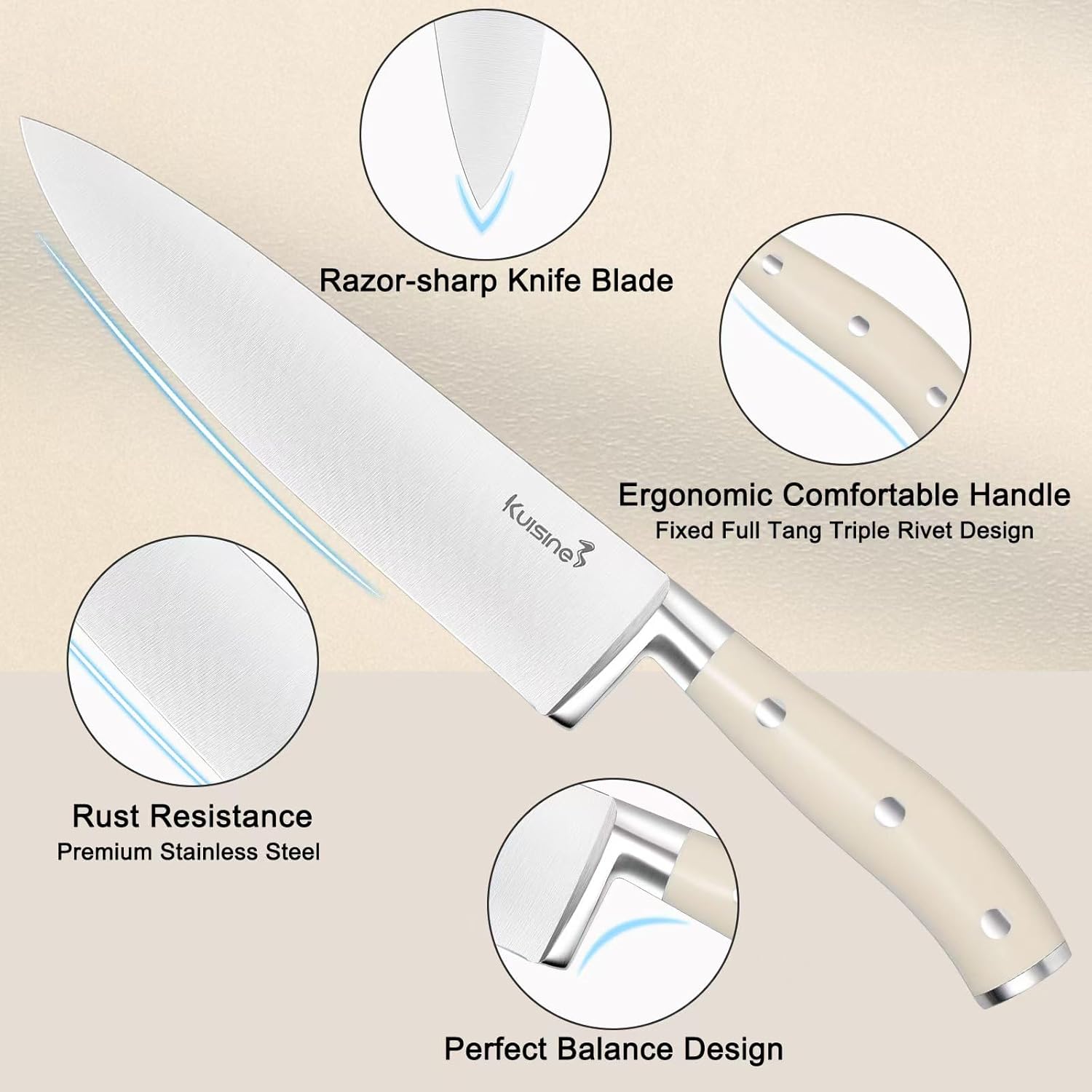 - Warranty Service: KUISINE knives set for kitchen pass more stricter inspection,please feel free to contact us if you have any question.