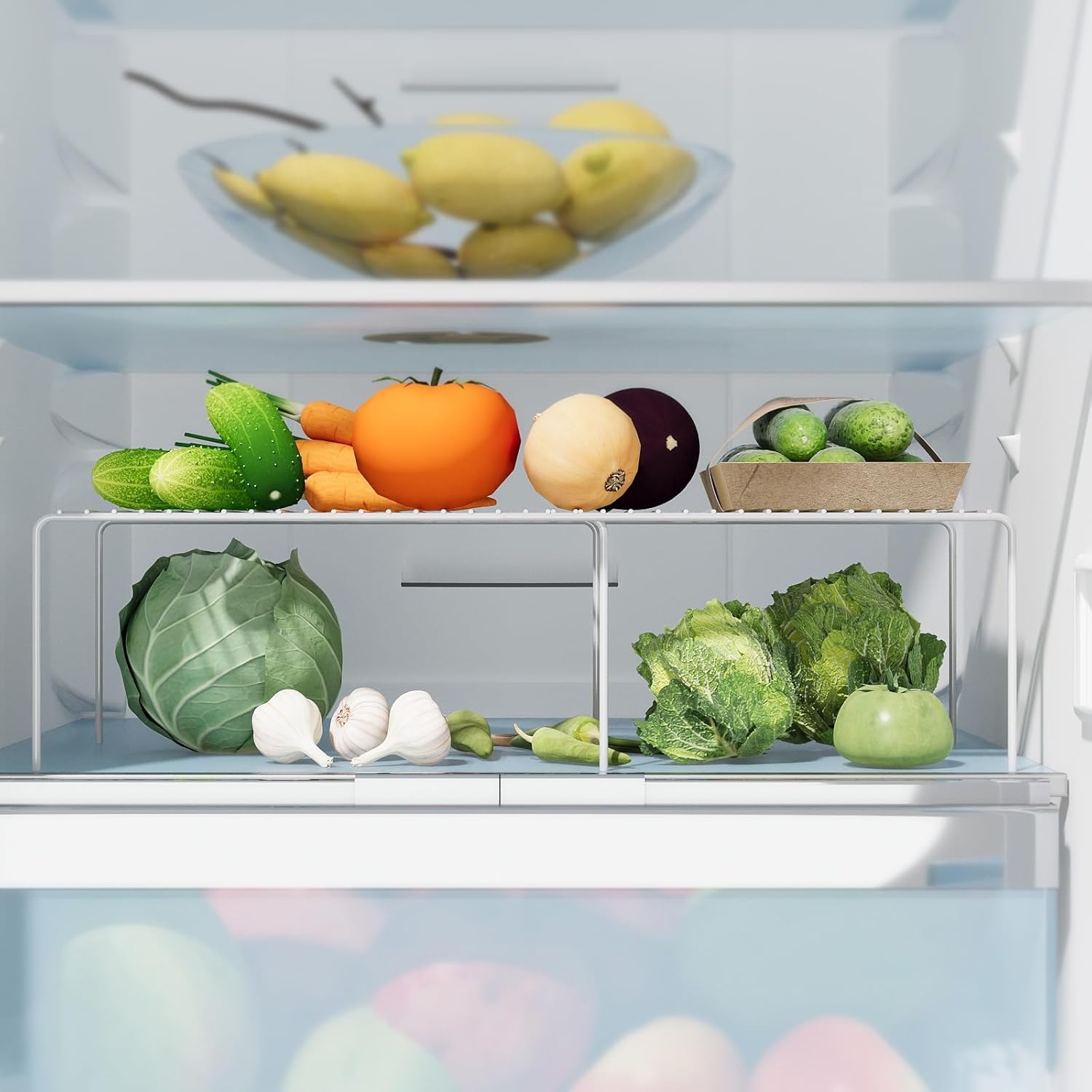 Expandable Storage Shelf, Pantry Organizers and Storage, Adjustable Rustproof Metal Wire Spice Rack, Space Saver Kitchen Storage Shelves for Pan, Pot, Countertop, Drawer, Fridge, Set of 4, White