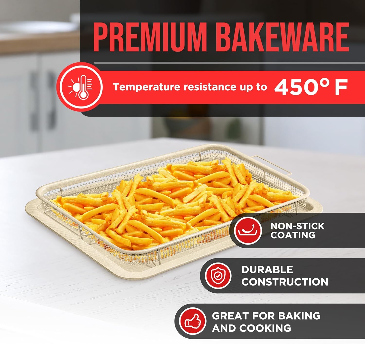 - DURABLE AND RELIABLE - crafted from high-quality carbon steel and featuring a durable non-stick White stone coating, our large crisper baking tray is built to withstand the demands of home cooking, the healthier way. It's designed for long-lasting performance meaning you can achieve delicious results everyday