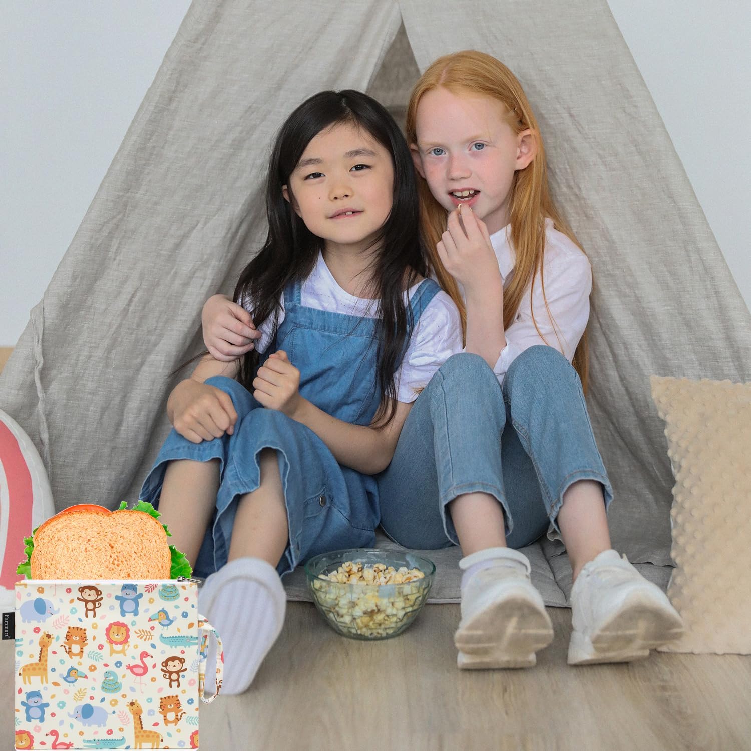Reusable Sandwich Bag/Snack Bag for Kids & Adults, Dual Layer Lunch Bag with Handle, Washable, Food Safe, BPA Free (1-Pack, Zoo)
