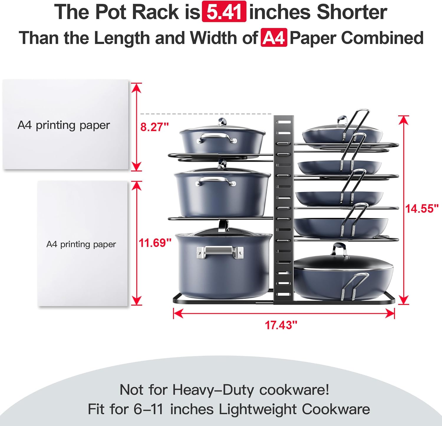 ORDORA Pots and Pans Organizer under Cabinet 14.55 Height, Adjustable 8-Tier Pot Organizers inside Cabinet, Kitchen Organizers and Storage Fit 6-11 inch Lightweight Cookware