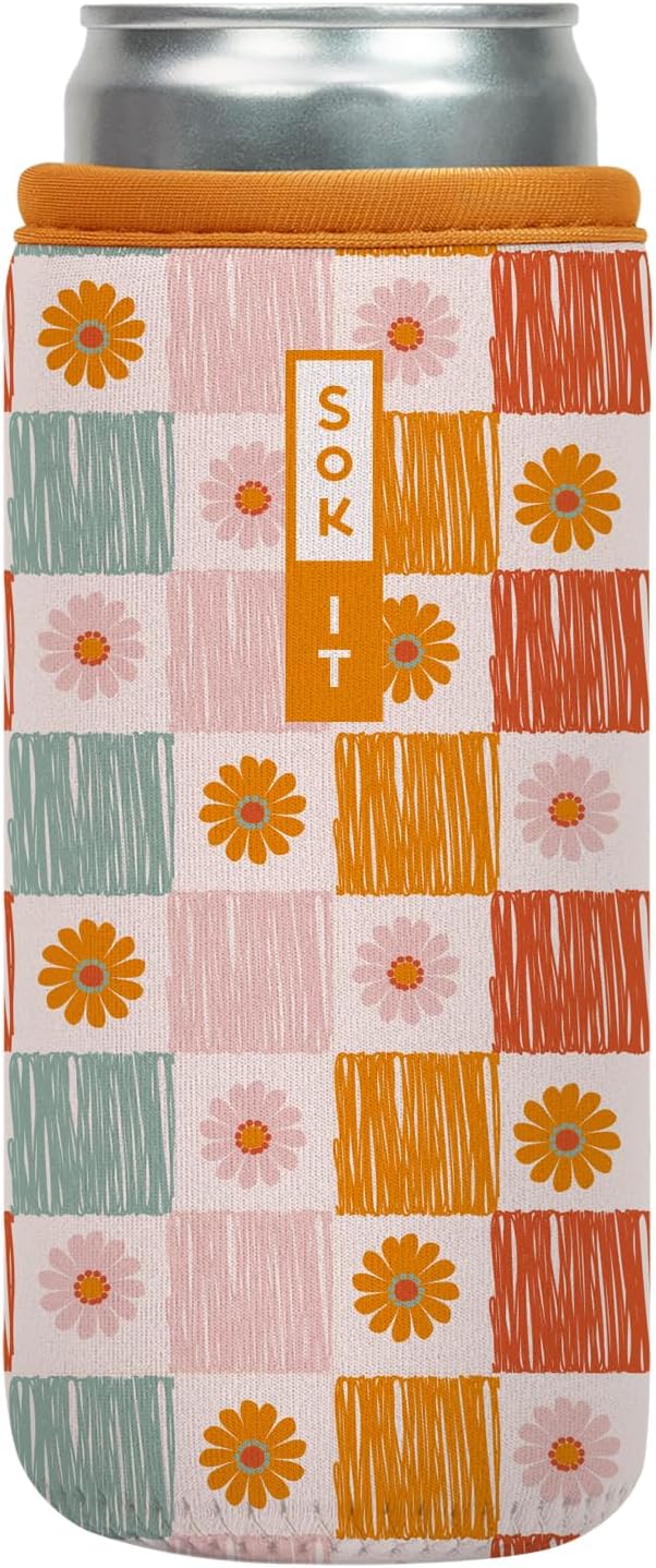Sok It CanSok Sleeve for Beer & Soda Insulated Neoprene Cover (Boho Floral, 12oz Slim Can Sleeve)