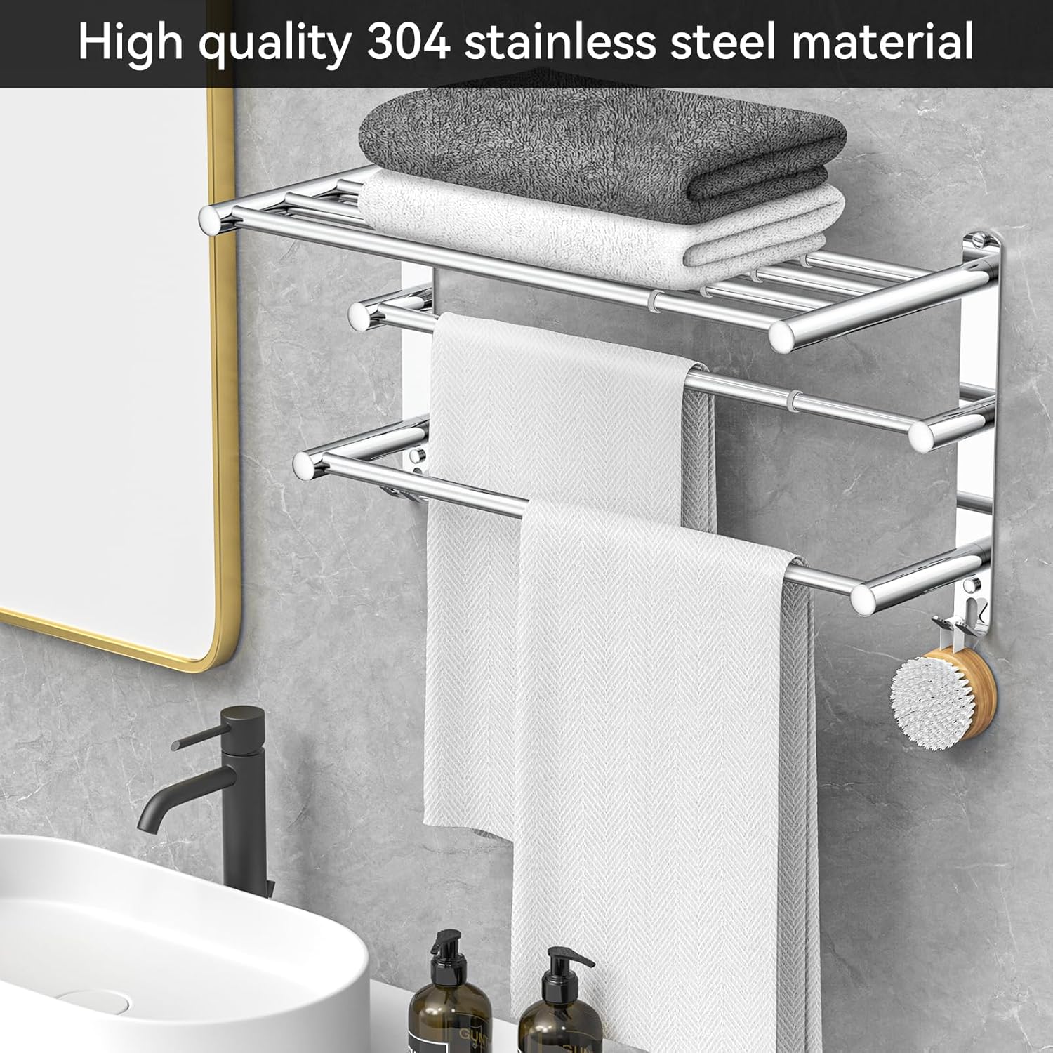 - 【Stainless steel material】: The towel rack is made of high-quality stainless steel, which has excellent durability and stability. Non rusting and non fading, adding a lasting sense of fashion to your bathroom.