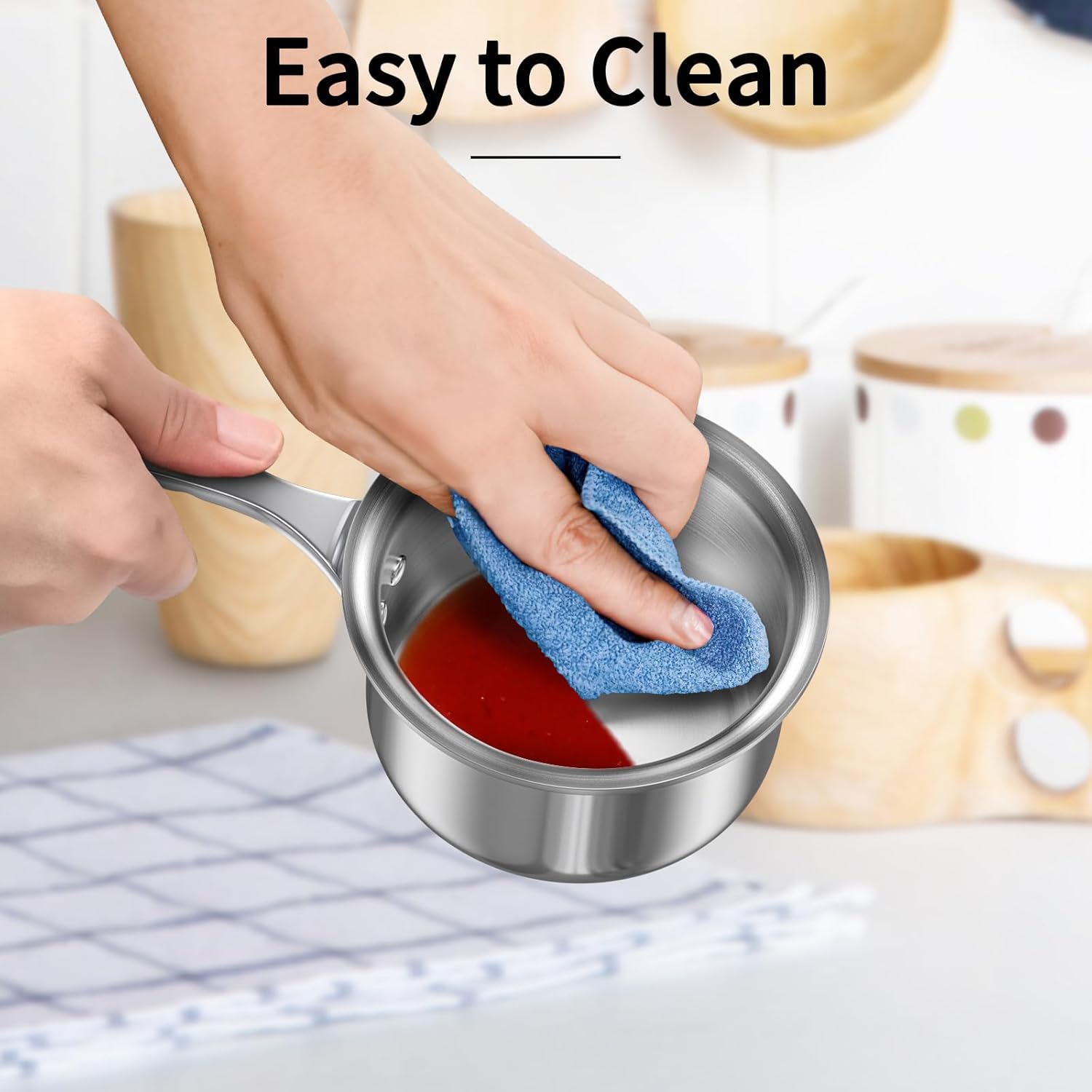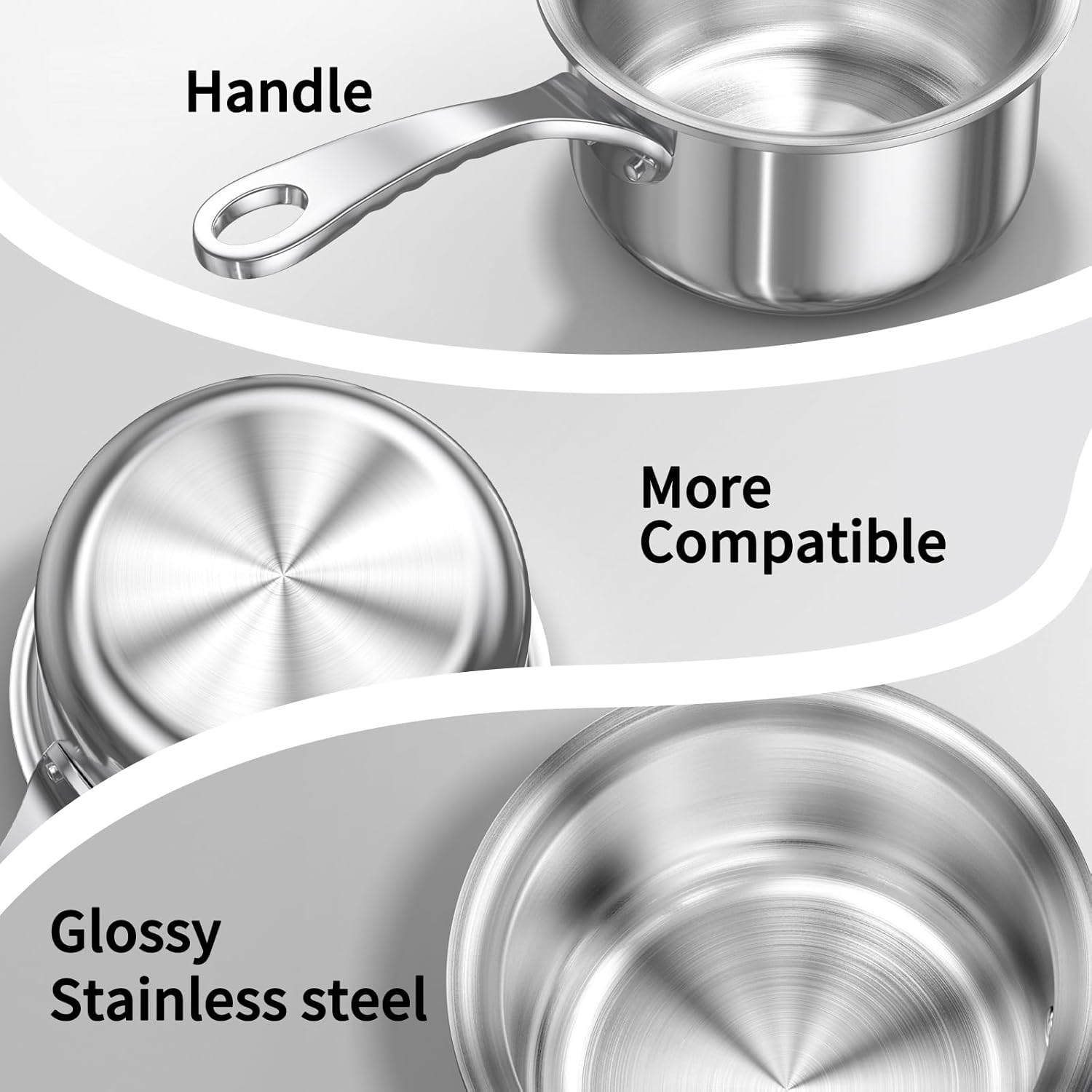 - Compact Size: This stainless steel mini pot measures approximately 4.13 inches in diameter x 2.36 inches in height x 3.74 inches in handle length and has a maximum capacity of 0.34Qt(under the condition of filling the whole pot). Good for one person serving of sauce, butter, coffee