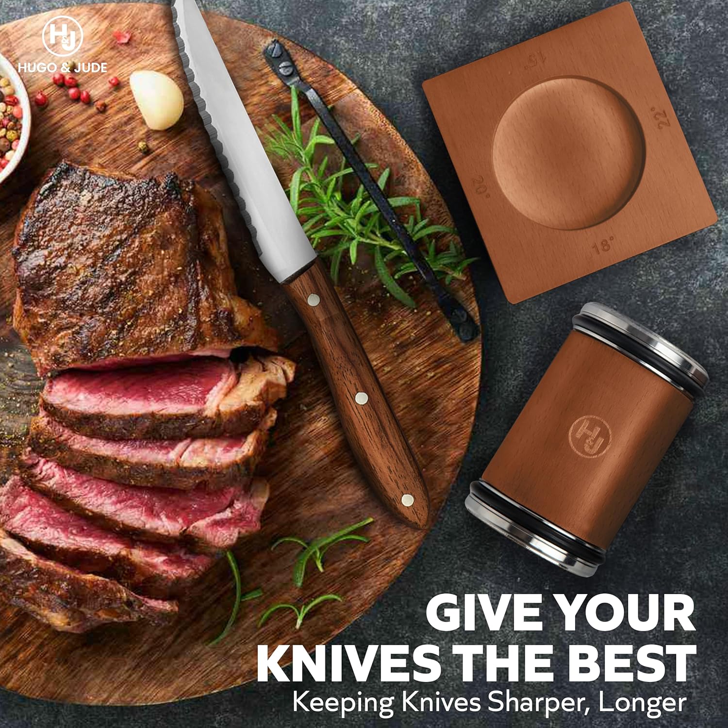 Hugo & Jude Premium Rolling Knife Sharpener - Sharpening Made Easy - Ergonomic Diamond Rolling Wheel Sharpener, 15/18/20/22° Magnetic Angles for Kitchen Knife Sharpener- Kitchen Gadgets & Gifts